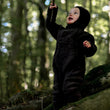 Dragten har ombuk ved ærmer og ben, som kan bukkes rundt om hænder og fødder.