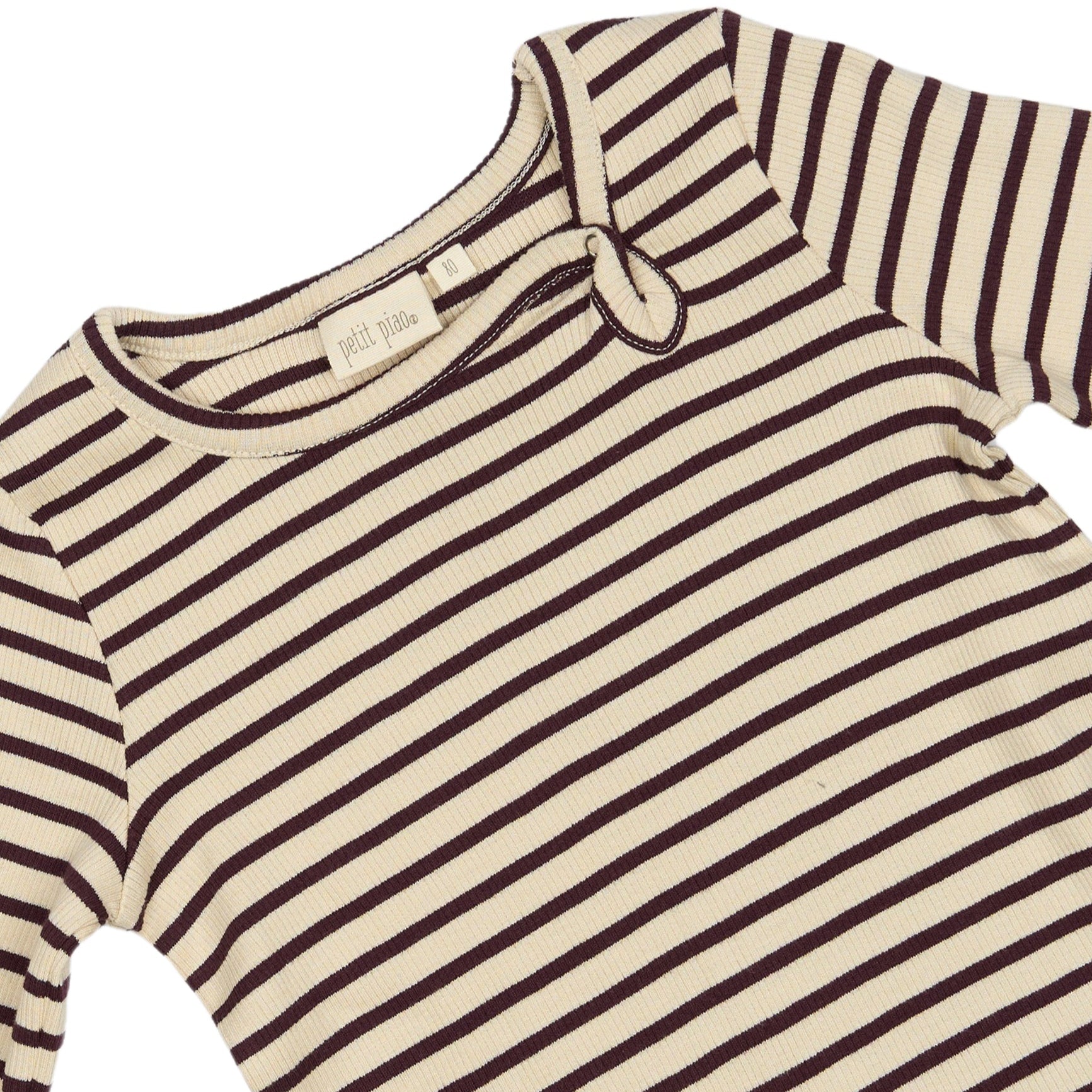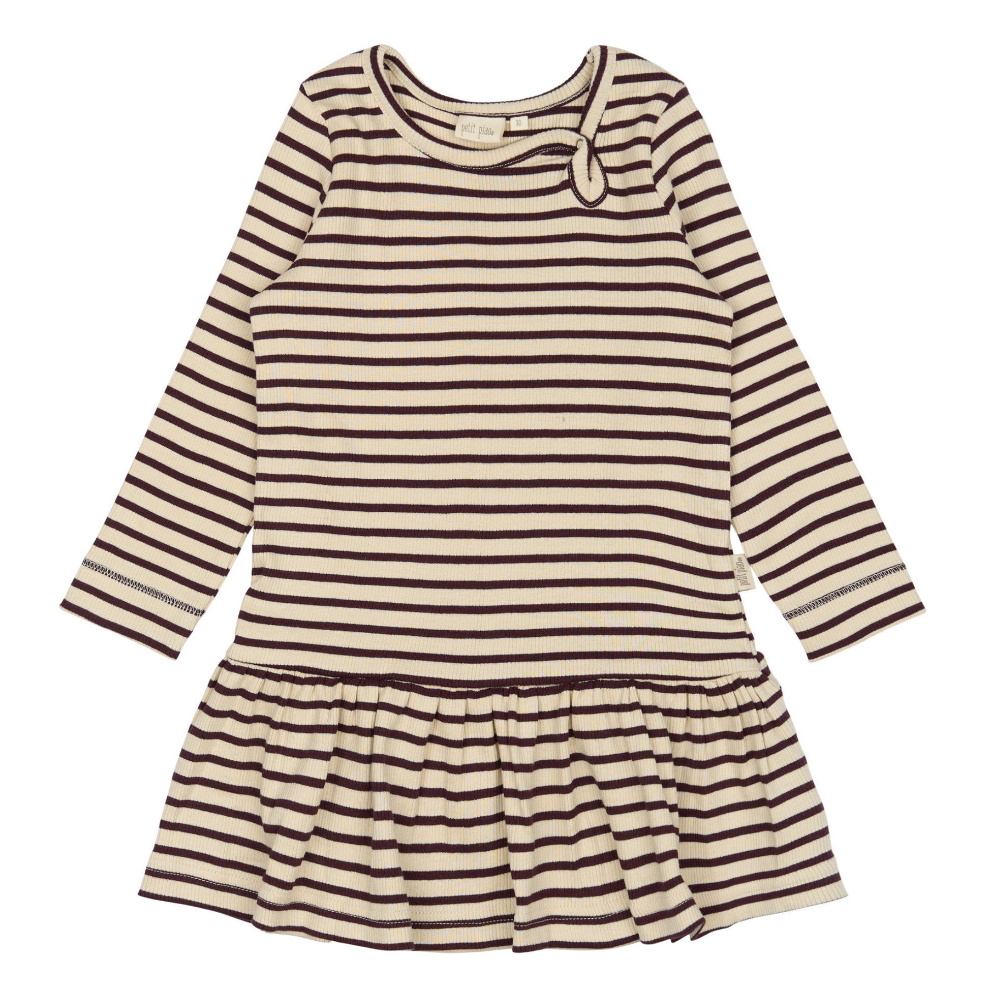 Petit Piao - Dress LS Modal Striped, PP306 - Dark Grape / Offwhite