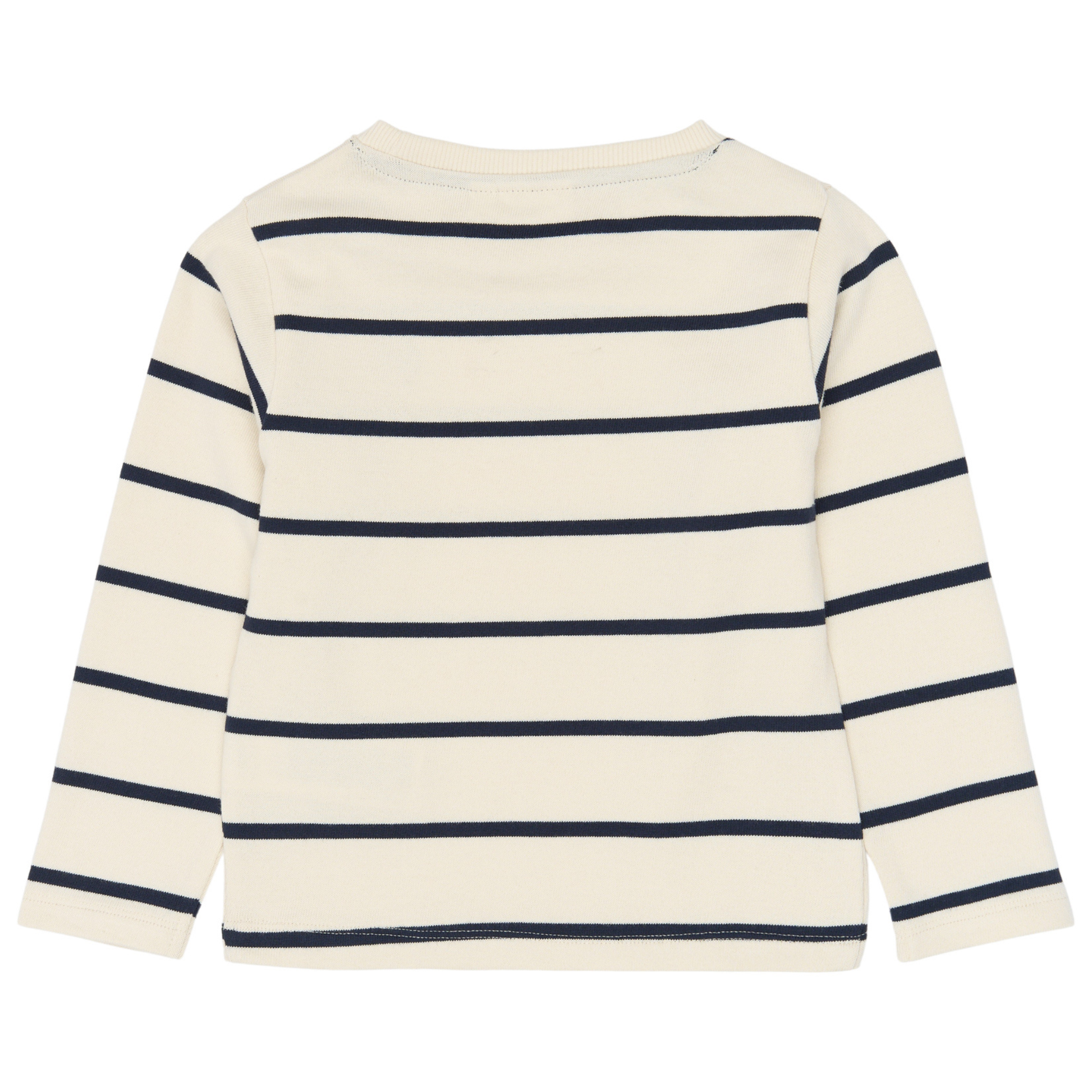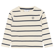 Denne i en skøn råhvid farve med skønne vandrette striber i mørk blå samt et mindre logo-broderi på venstre bryst.