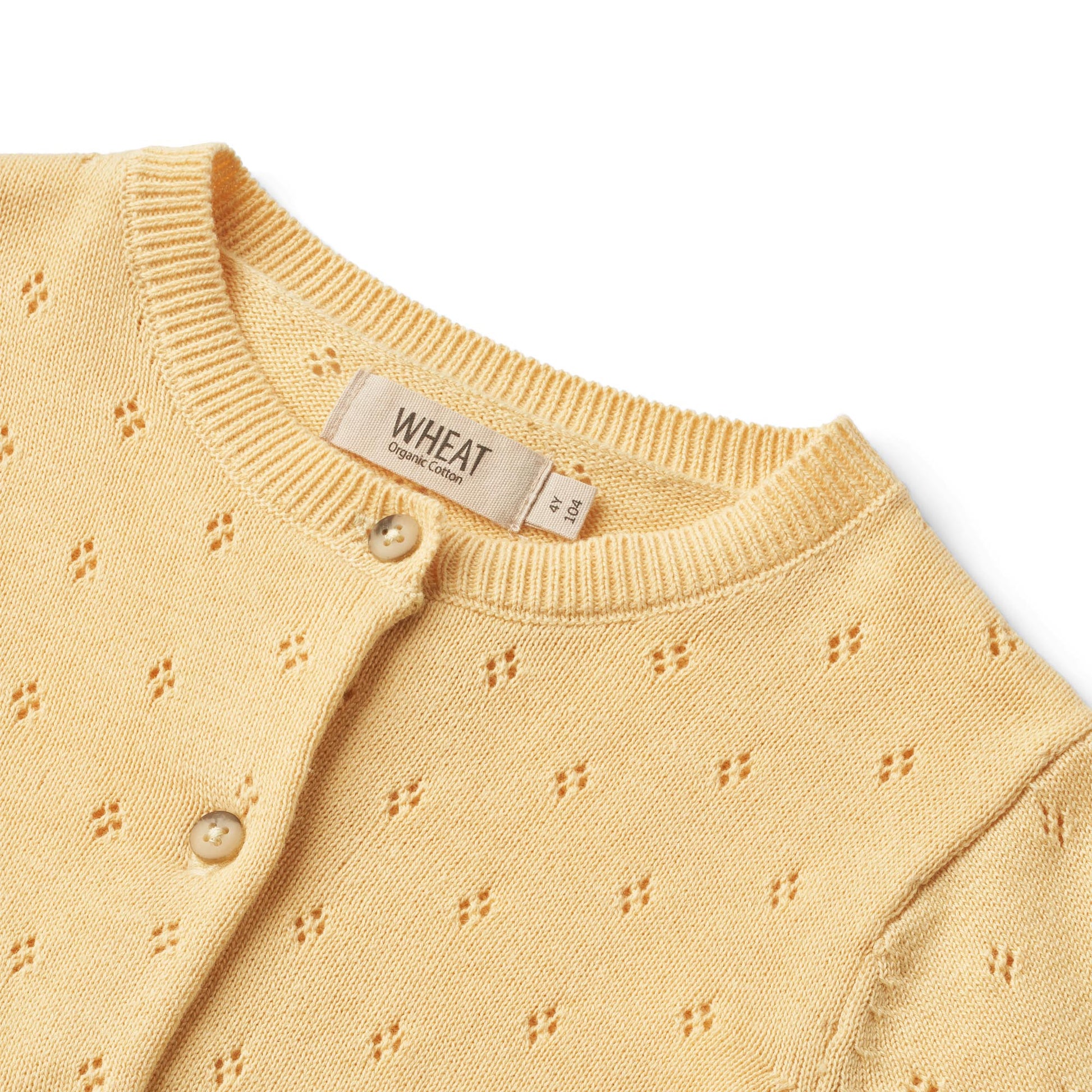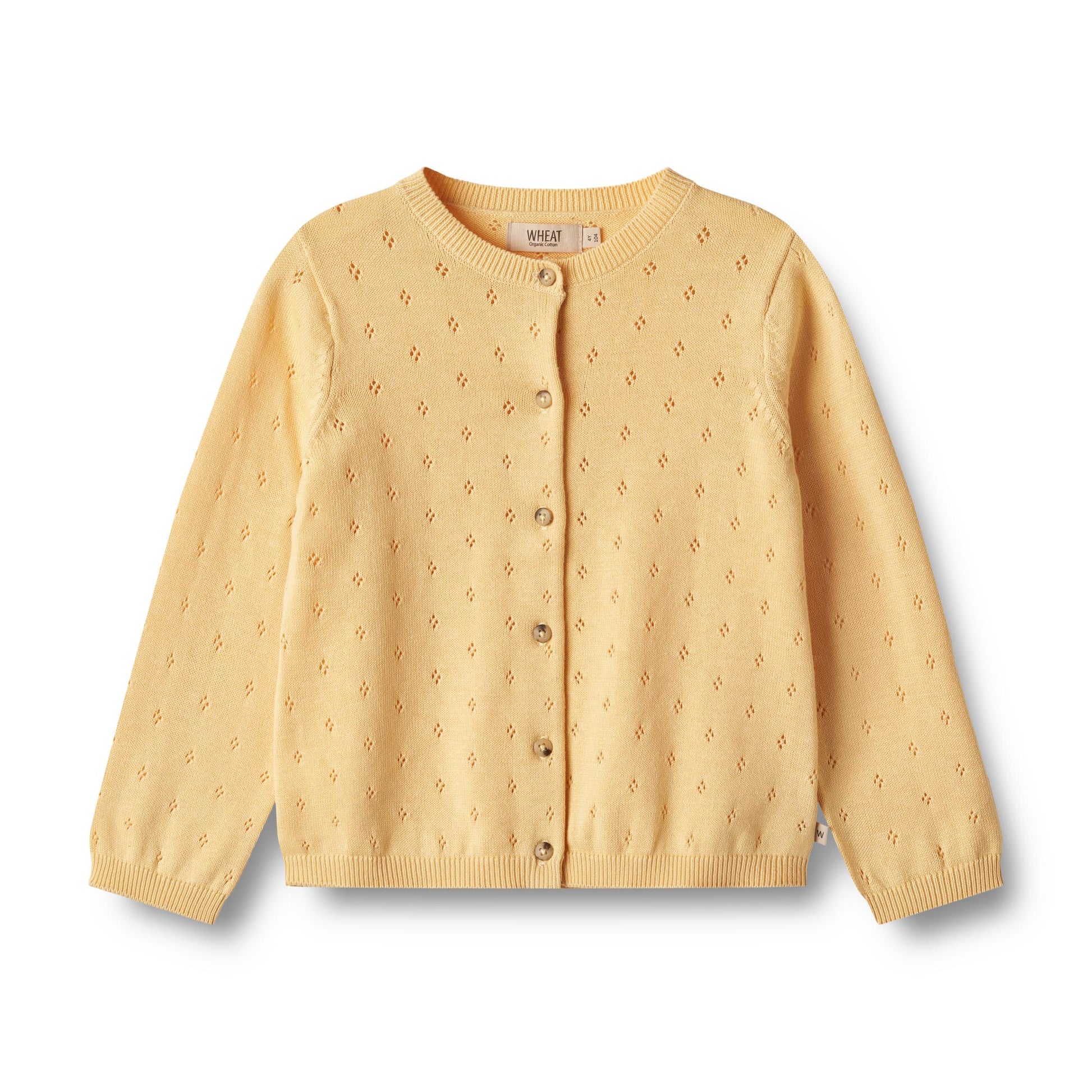 Klassisk langærmet cardigan i økologisk bomuld til junior fra Wheat.