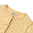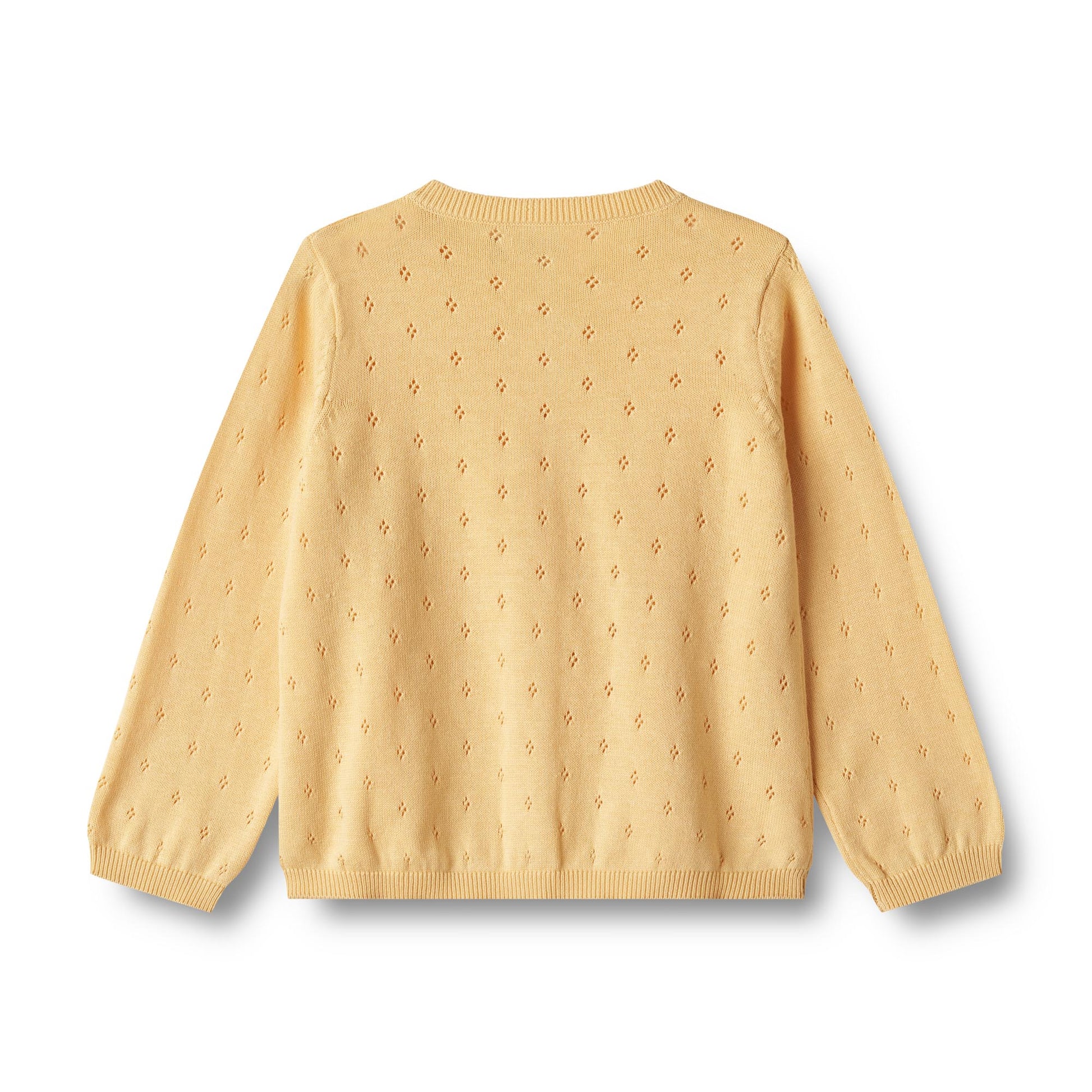 Denne i en flot lys gul farve i et skønt pointelle hulmønster.