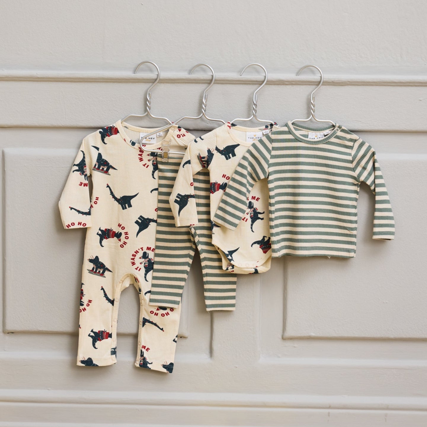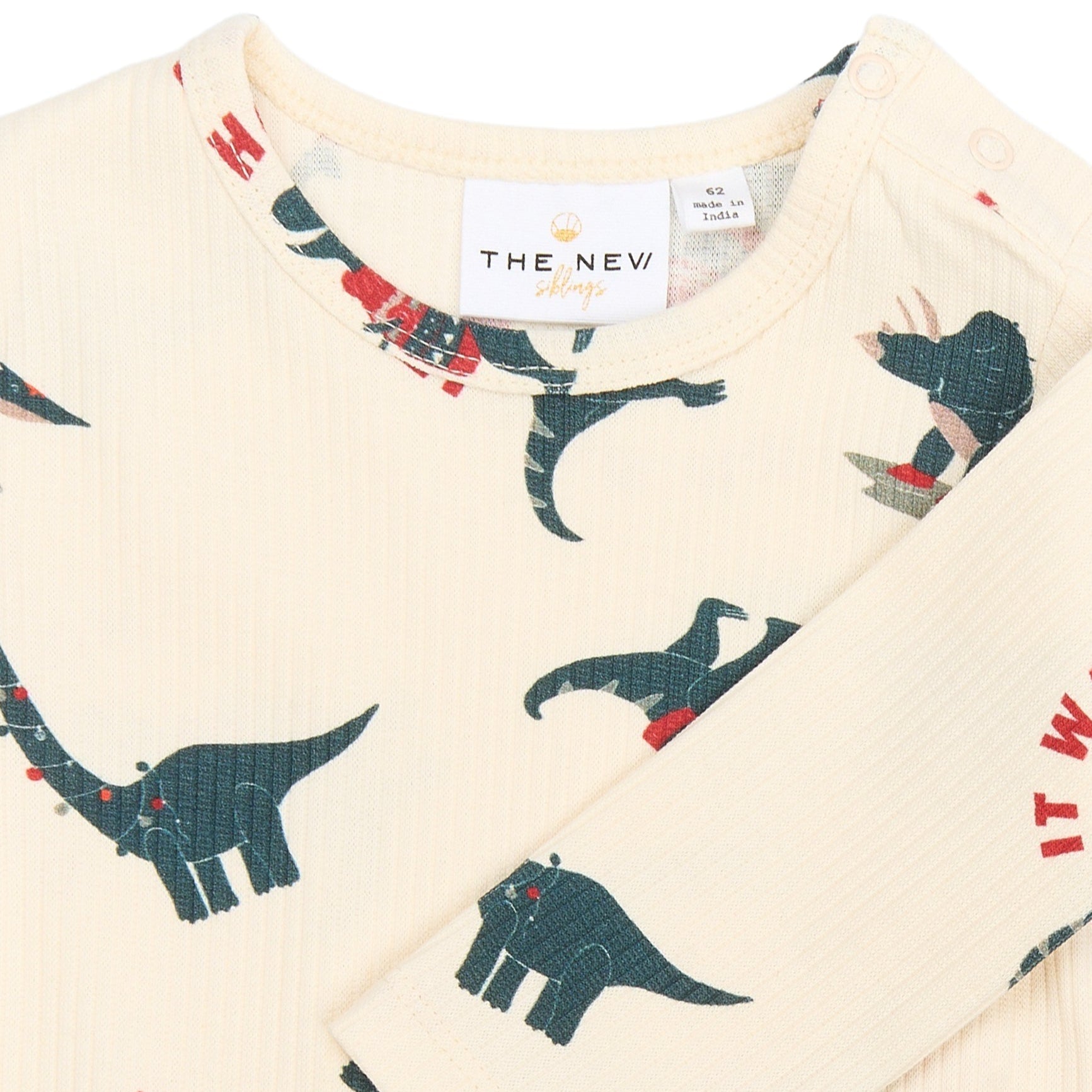 THE NEW Siblings - Holiday LS Rib Jumpsuit, TNSB6648 - Gardenia Dino AOP