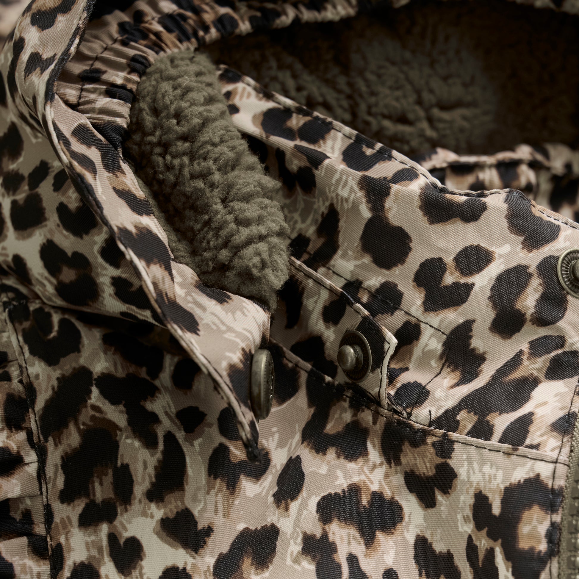 Denne i en fin lys støvet brun farve med et skønt leopardprint over det hele i sort, brun og beige.
