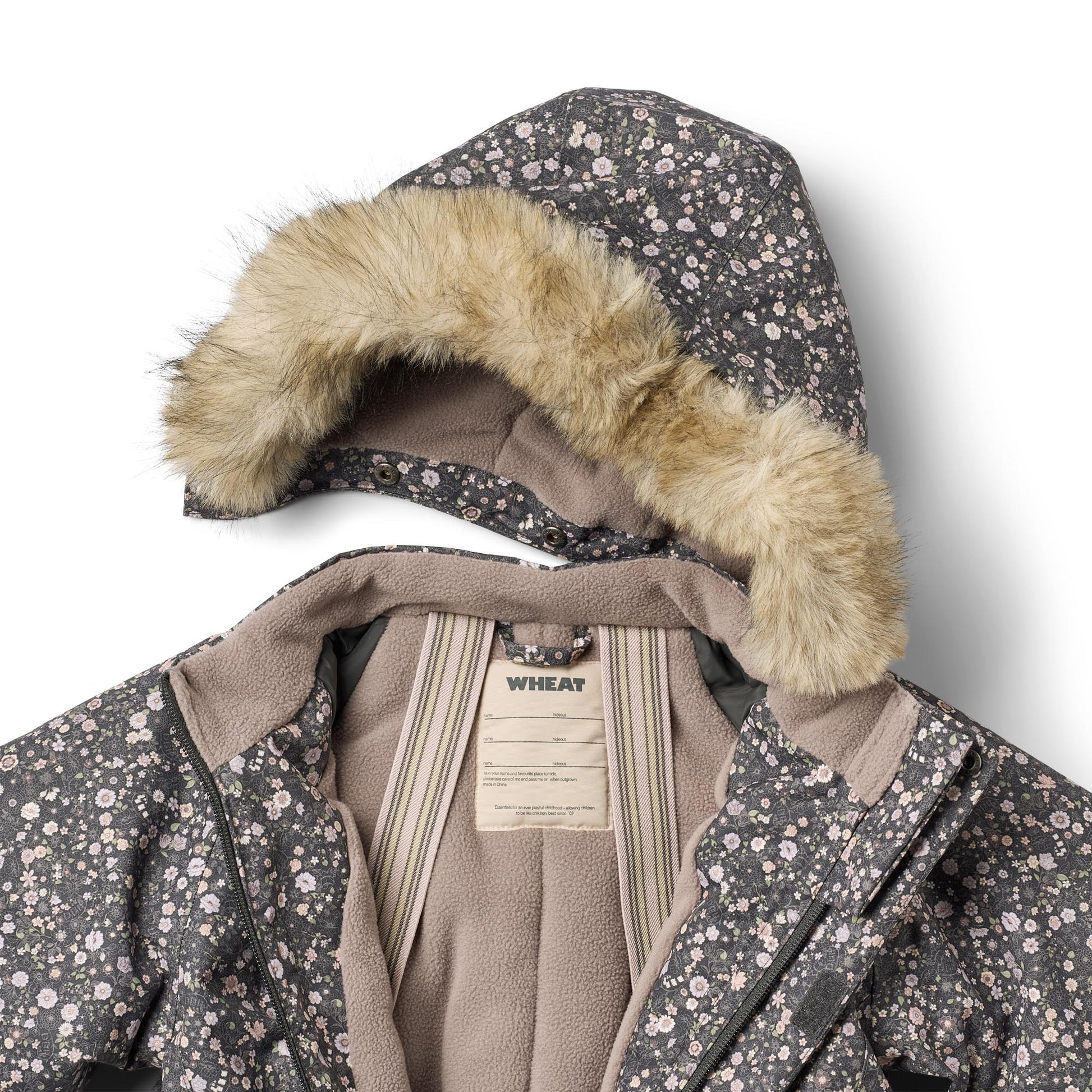 Wheats tekniske flyverdragter er åndbare, slidstærke og vind- samt vandtætte for at sikre, at dit barn forbliver varmt og tørt i det kolde efterårs- og vintervejr. Den er desuden smudsafvisende og er derfor nem at rengøre.