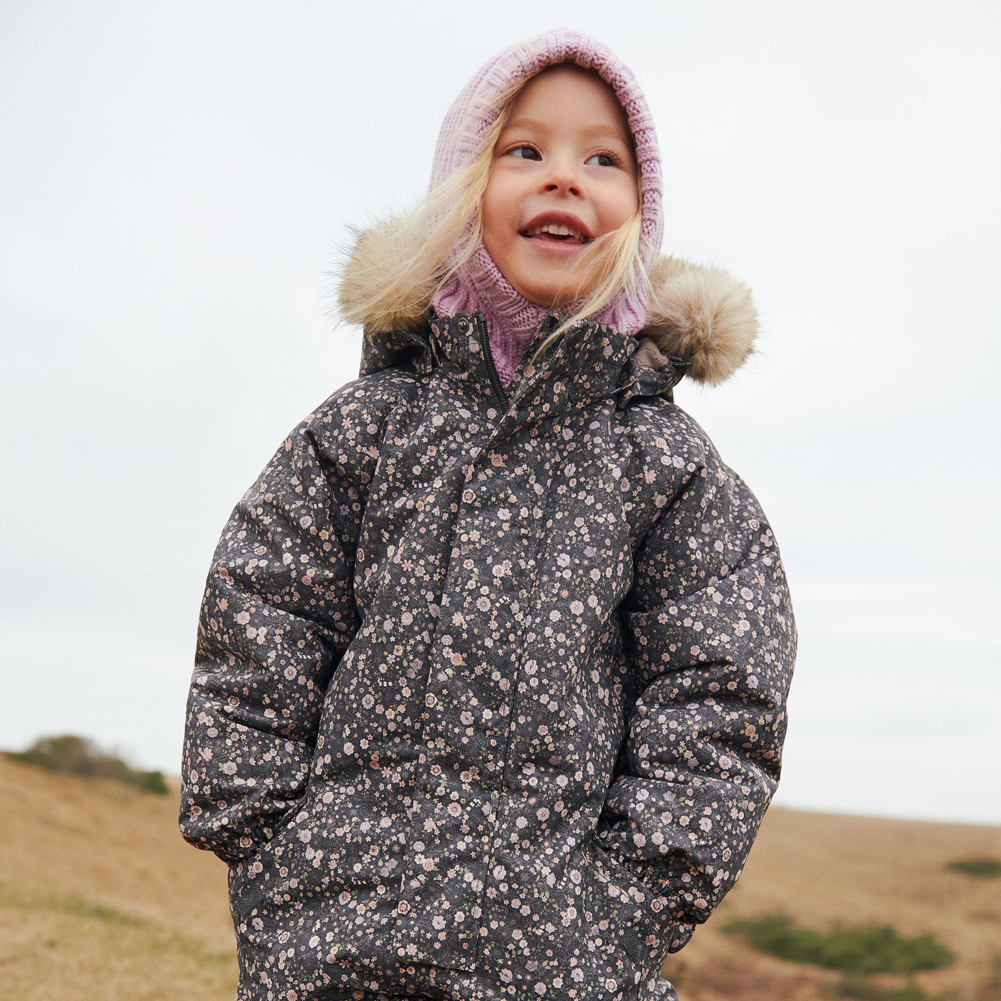 - Aftagelig og justerbar hætte med aftagelig imiteret pels