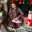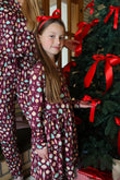 Denne i en flot mørk bordeaux farve med et fint juleprint over det hele af ballerinaer, soldater (nøddeknækker), svaner, julekugler og andet julepynt.
