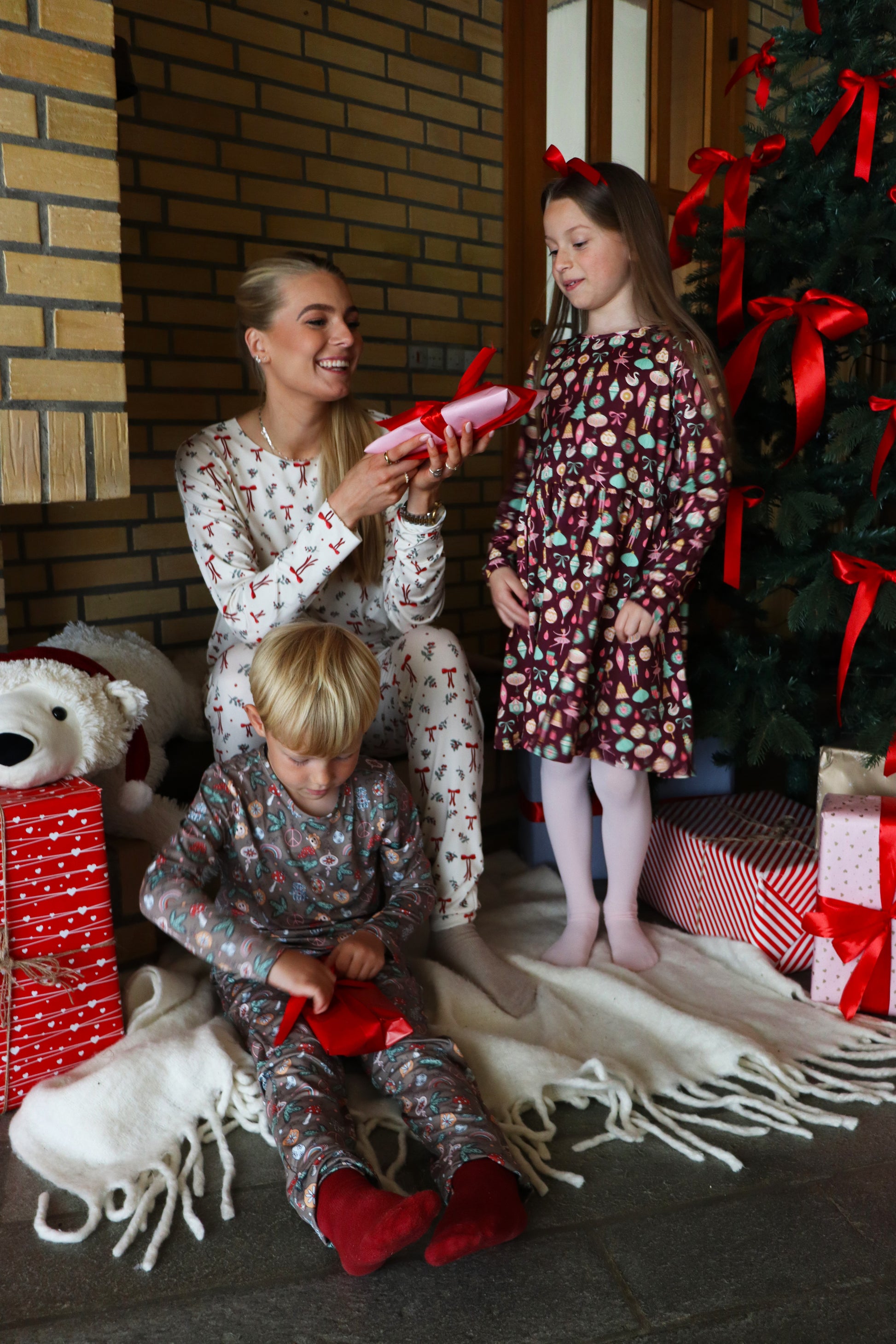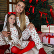 Denne i en fin råhvid farve med et flot juleprint over det hele af røde sløjfer og små grene af mistelten.