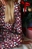 Disse i en flot mørk bordeaux farve med et fint juleprint over det hele af ballerinaer, soldater (nøddeknækker), svaner, julekugler og andet julepynt.