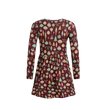 Denne i en flot mørk bordeaux farve med et fint juleprint over det hele af ballerinaer, soldater (nøddeknækker), svaner, julekugler og andet julepynt.
