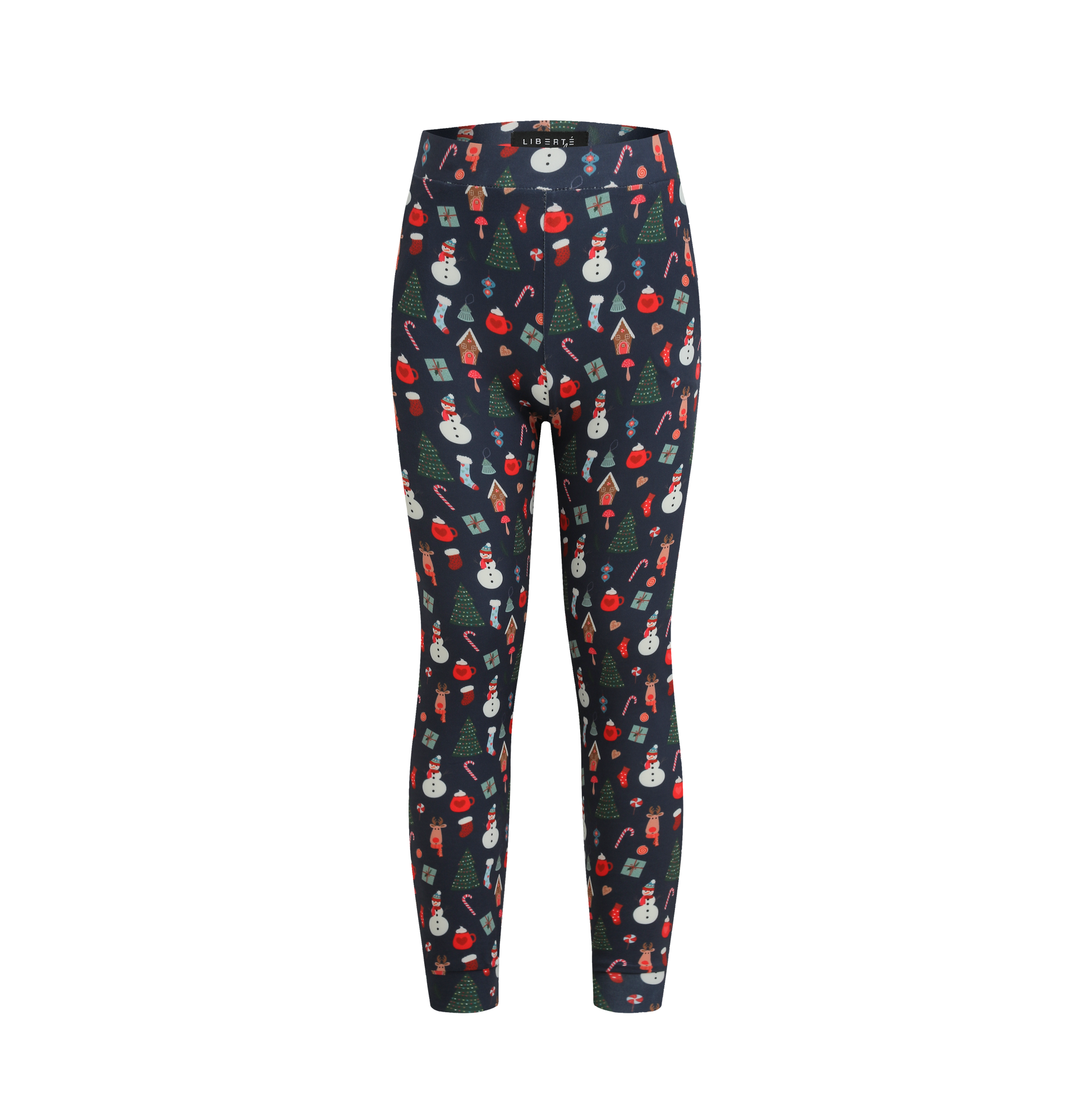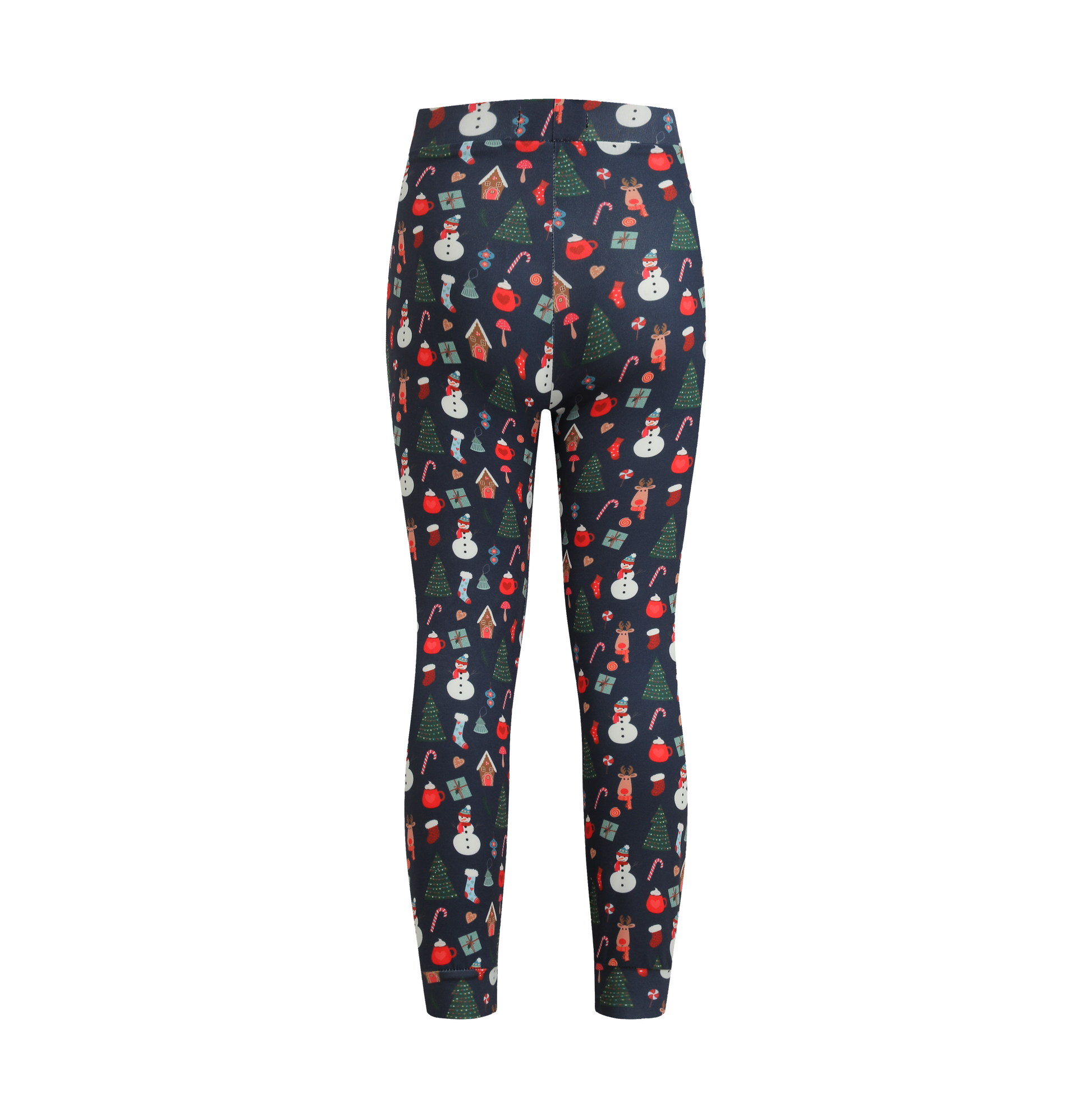 Disse i en skøn mørk blå farve med et fint juleprint over det hele af honningkage huse, snemand, rensdyr, juletræ og andet julepynt.