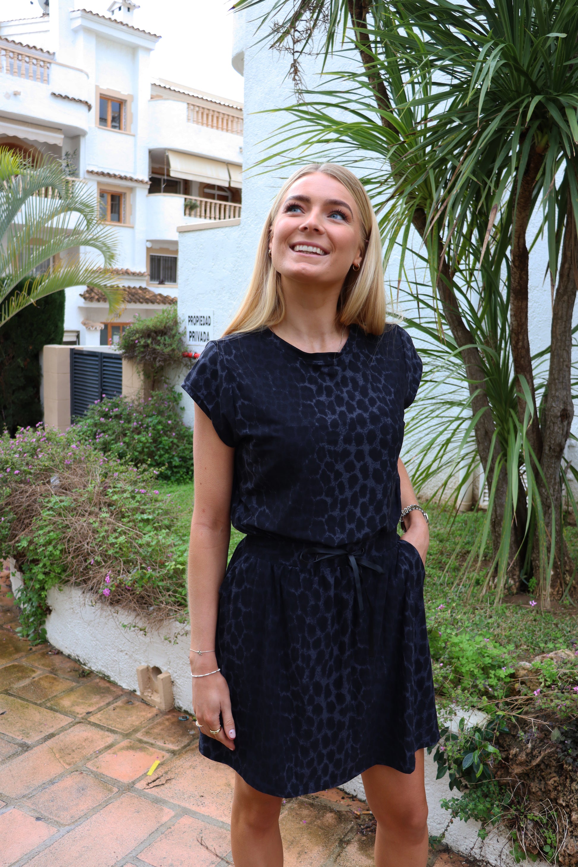 Denne i et skønt leopardmønster i sort og grå nuancer.