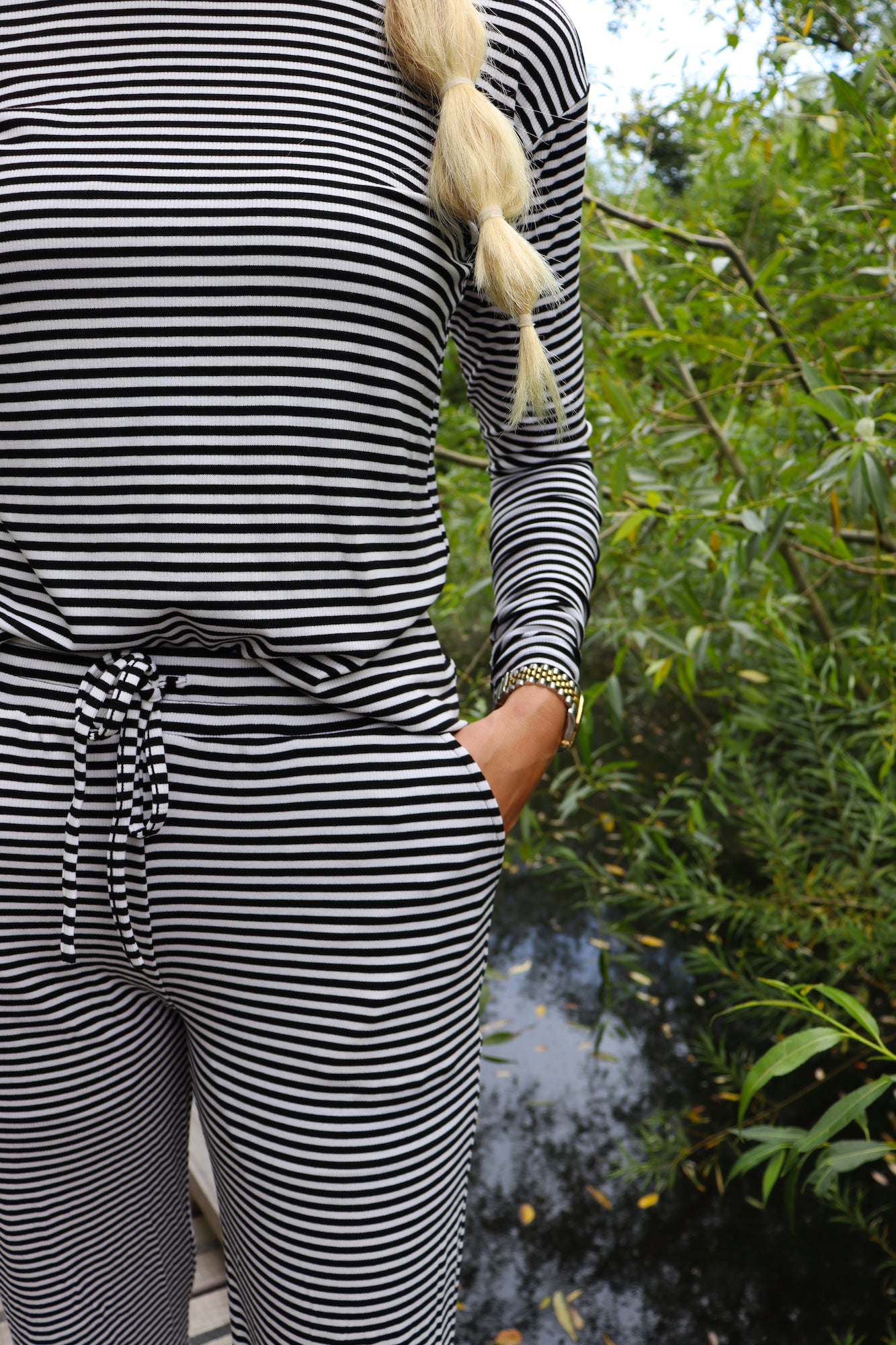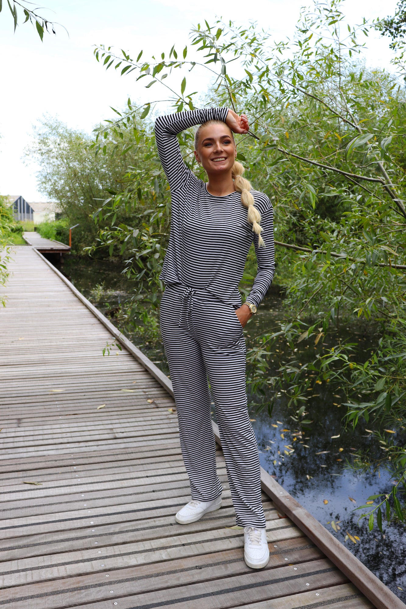 Disse i flotte smalle striber i sort og råhvid.
