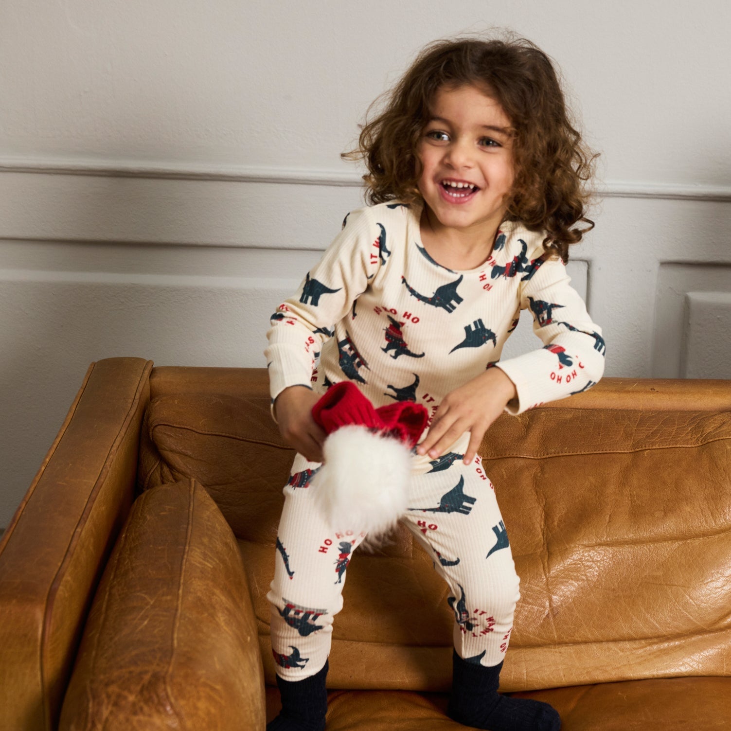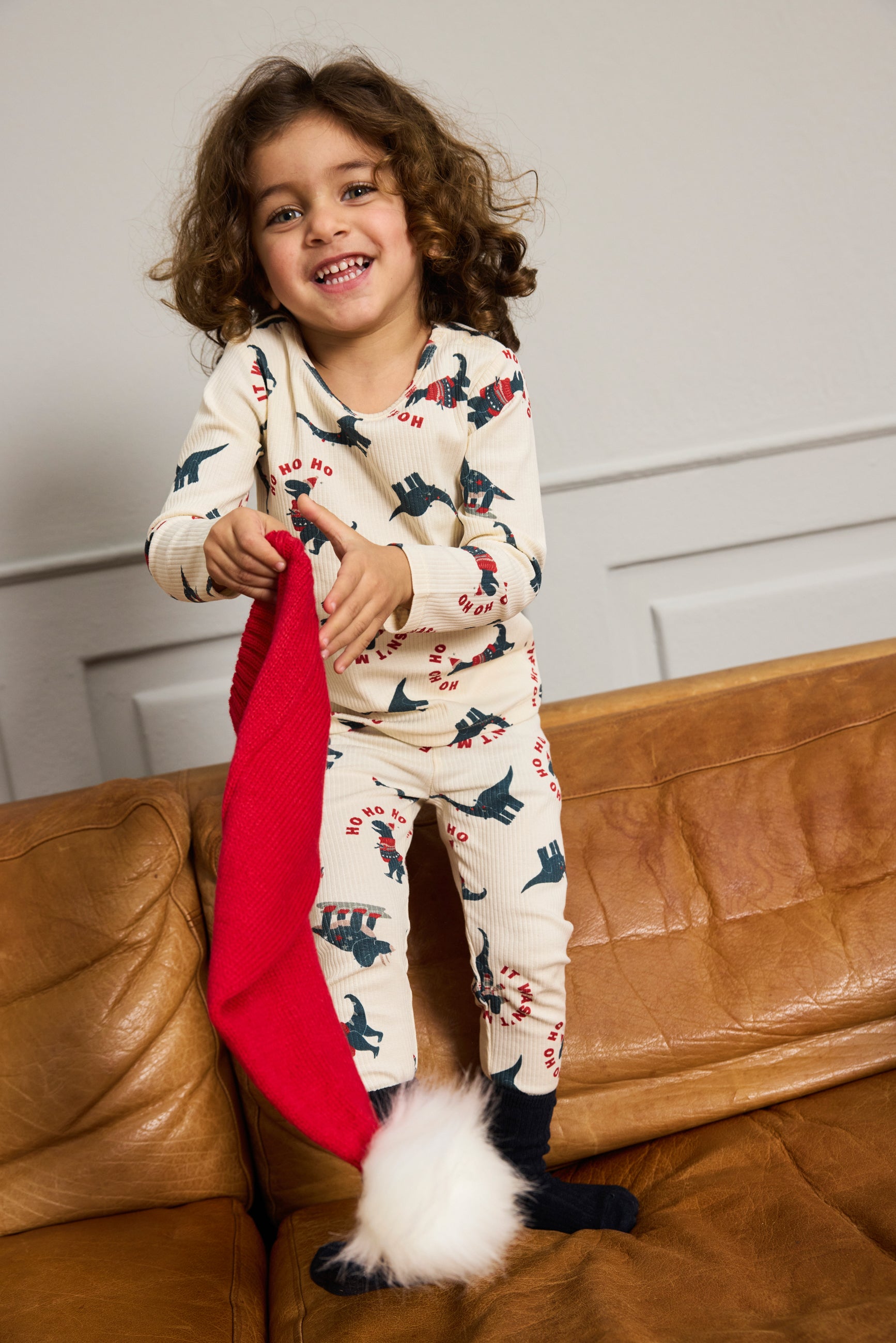 THE NEW Siblings - Holiday Rib Nightset, TNST6639 - Gardenia Dino AOP