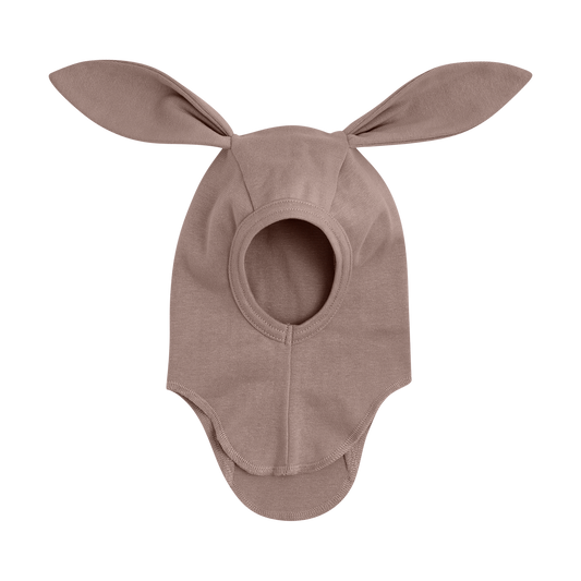 HUTTEliHUT - Balaclava Ears Cotton Rib, 460428 - Savannah Melange Sød elefanthue med øre i...