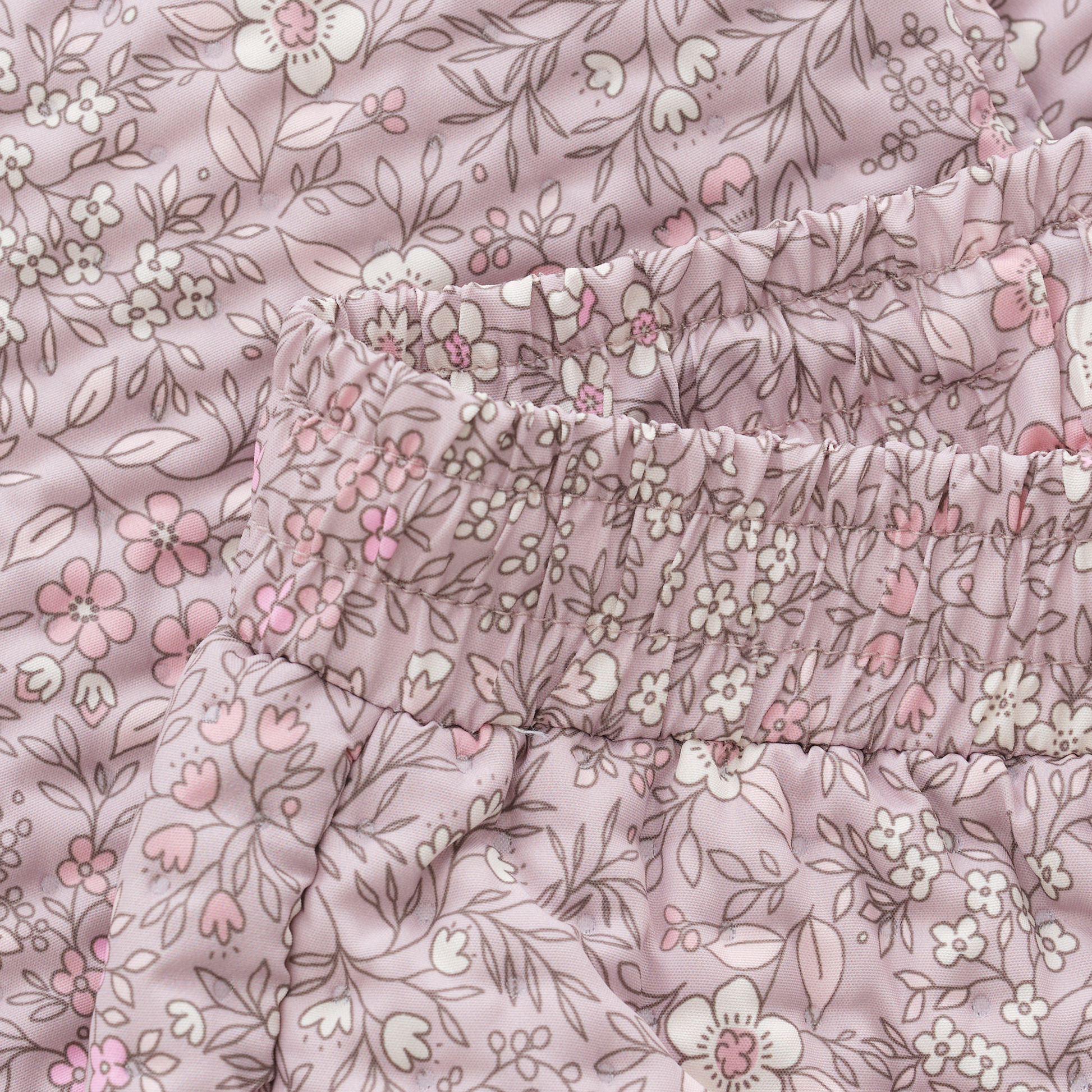 Dette i en støvet lys lyng farve med et flot print af små blomster over det hele i lyserød, lys pink, og råhvid.