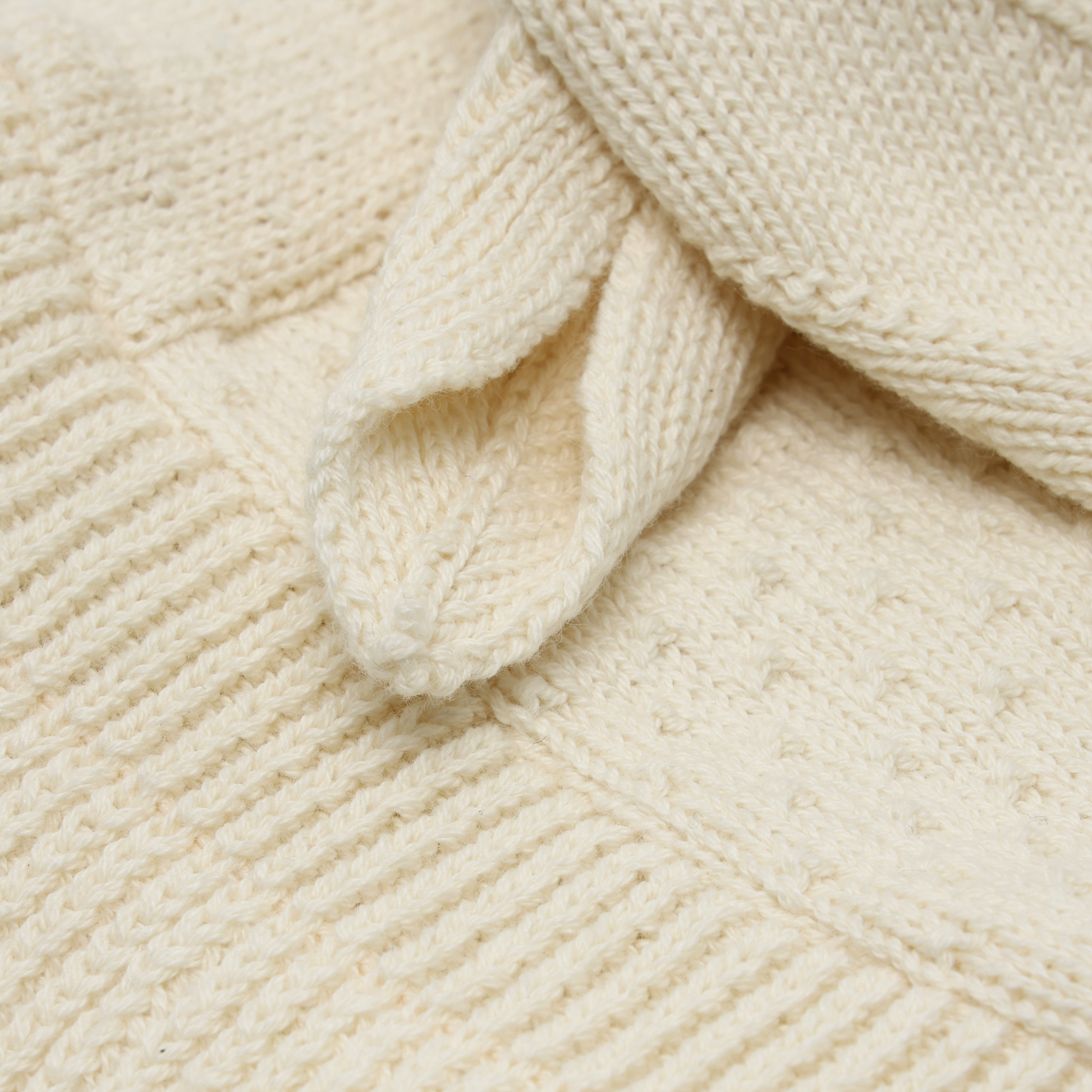 Denne i en fin råhvid farve i et fint strikket mønster.