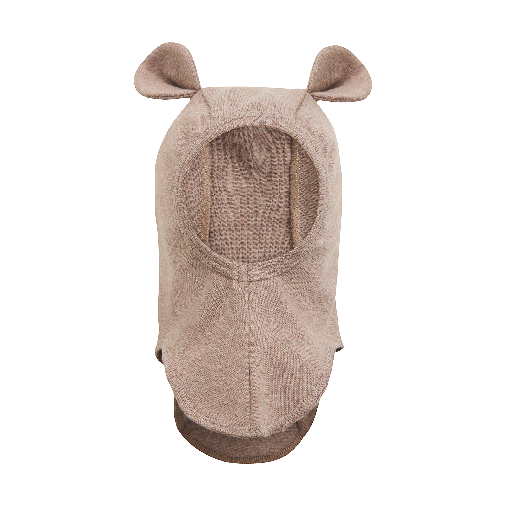 Elefanthuen har en rund hovedform med to søde bjørneører på toppen og en smal, elastisk ribkant omkring ansigtet, der sikrer en god pasform.