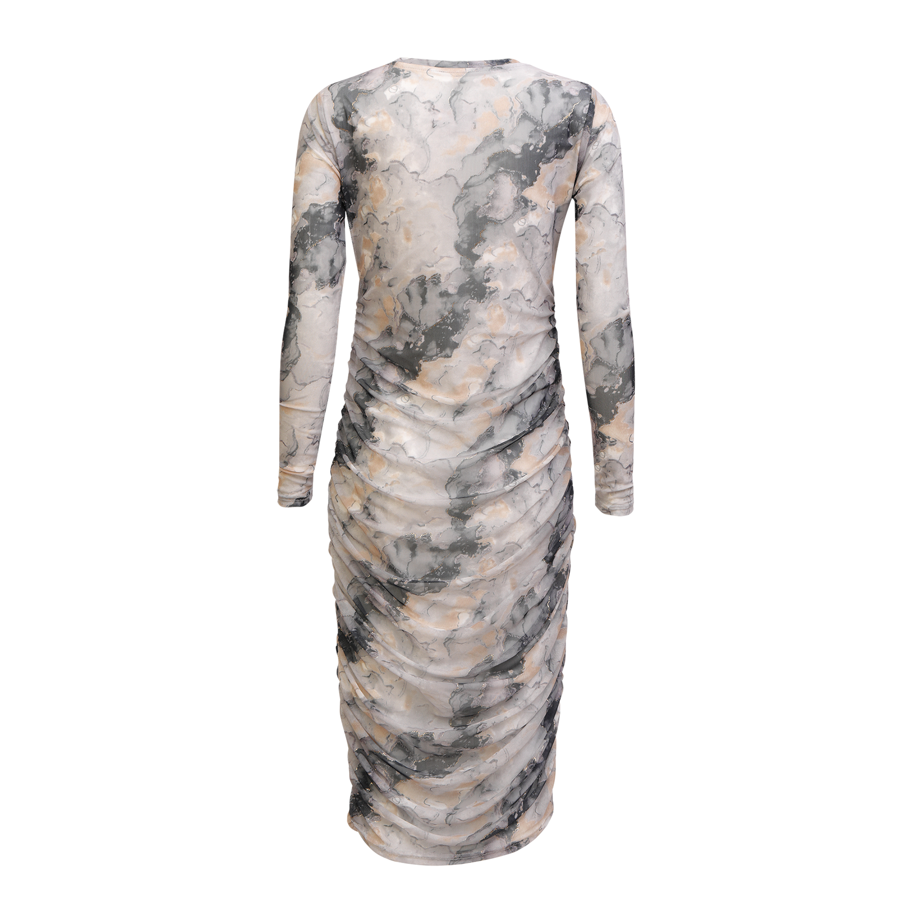Liberté - Mesh LS Long Dress, 22219 - Black Grey Gold Marble