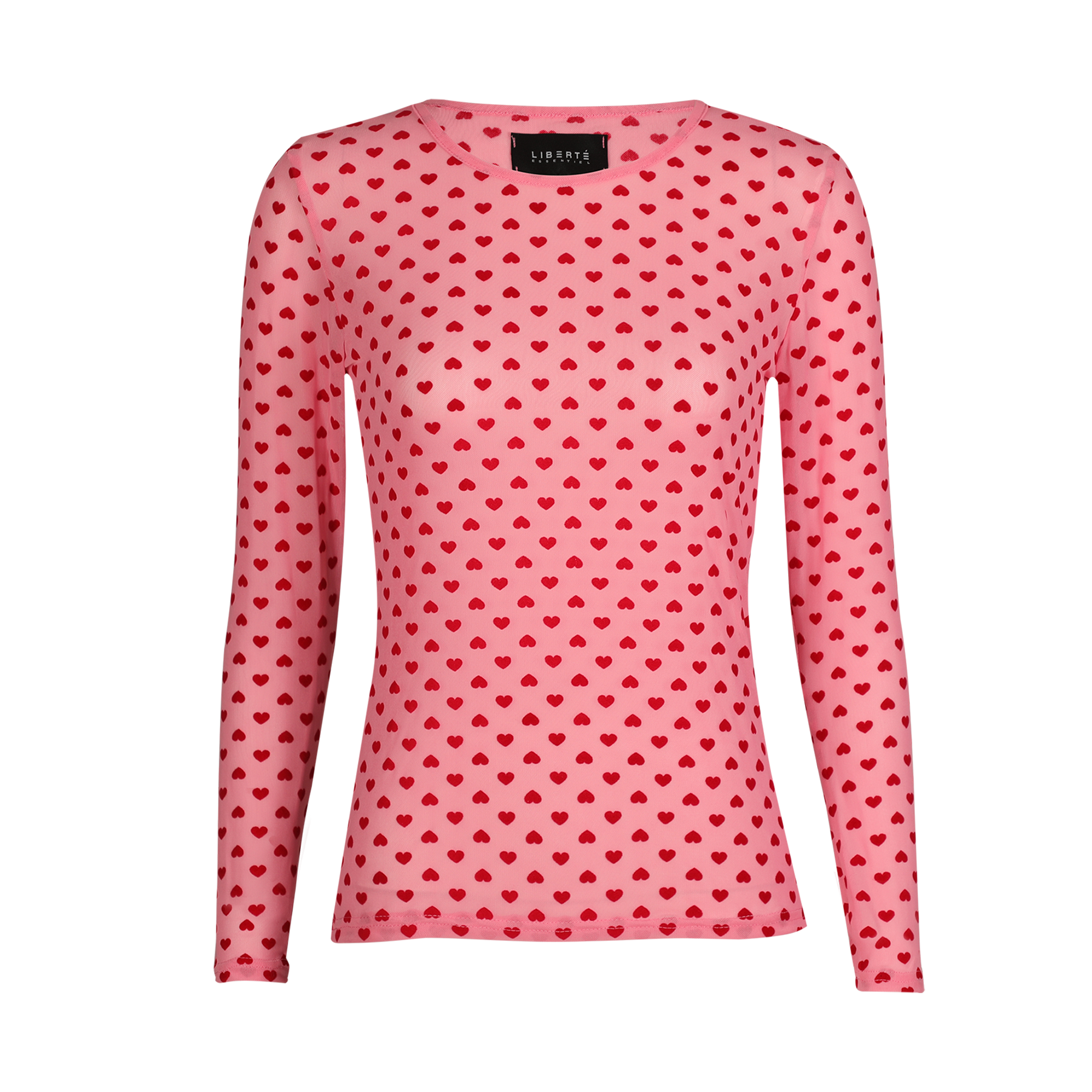 Liberté - Mesh LS T-Shirt, 22065 - Pink Red Flock Heart