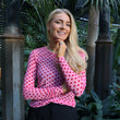 Denne i en flot lys pink farve med et fint mønster i mørk rød fløjlsblød filt af små hjerter over det hele.