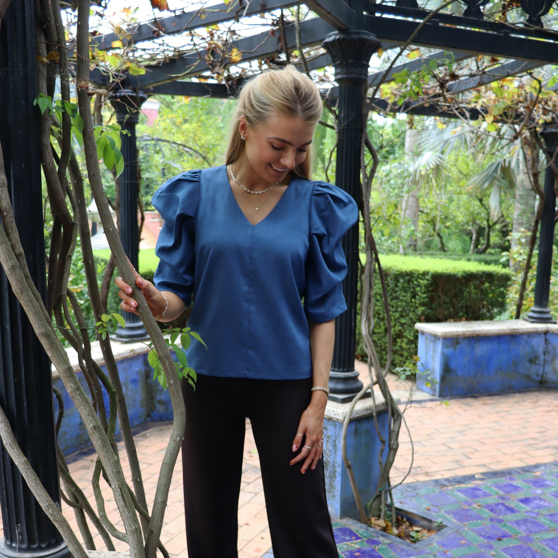 Liberté - Winnie Vneck Blouse, 22358 - Dusty Blue