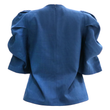 Blusen har V-udskæring i halsen og åbnes/lukkes i nakken med skjult lynlås.
