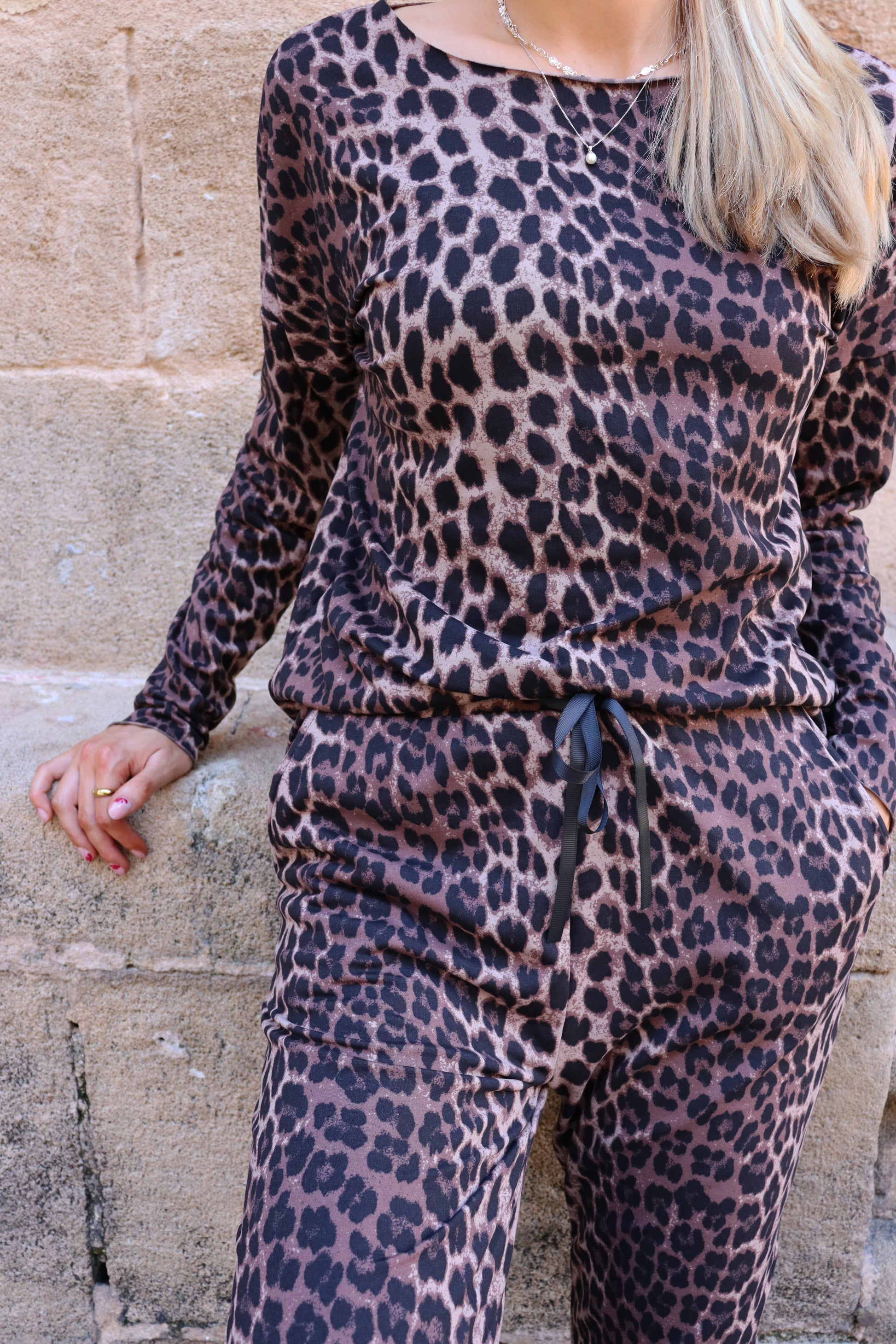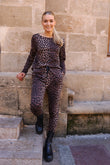 Denne i et skønt leopardmønster i sort og brune nuancer.