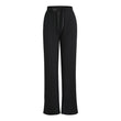 Bukserne har elastik samt bindebånd i taljen.