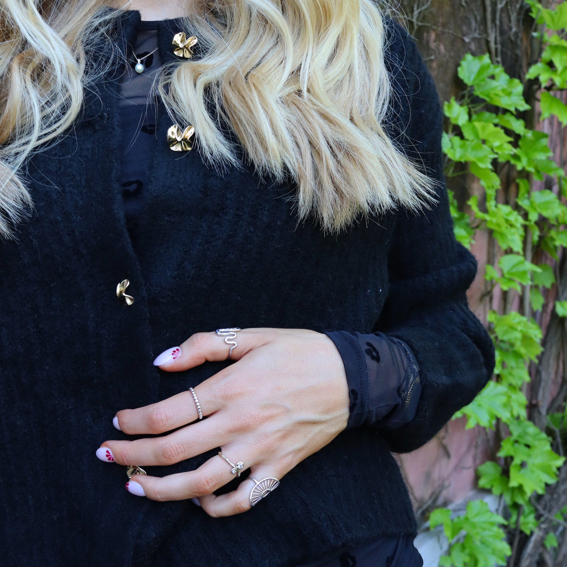 Denne i en klassisk sort farve med fine gyldne knapper.