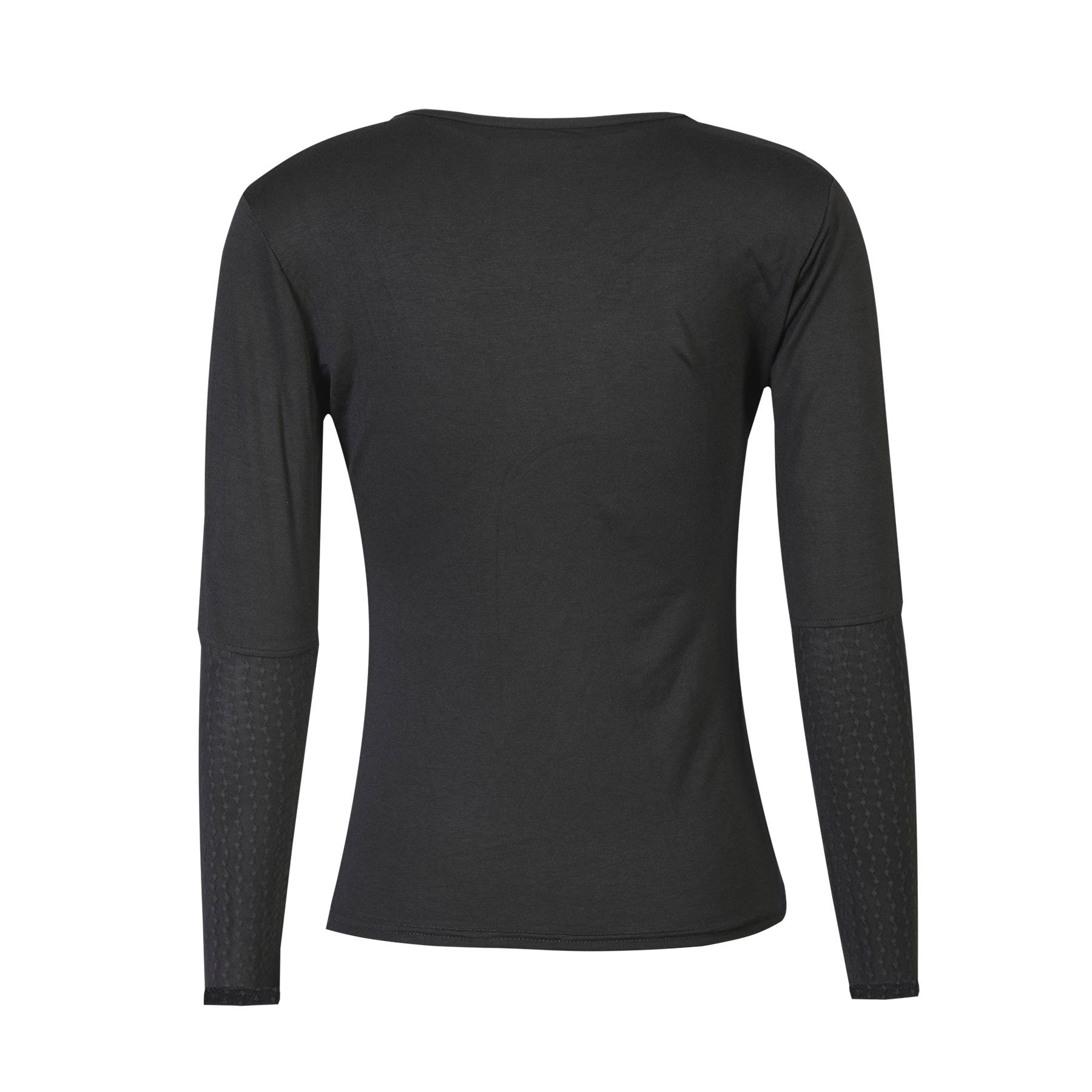 Halvdelen af ærmerne er i sort mesh med et fint bølget mønster.
