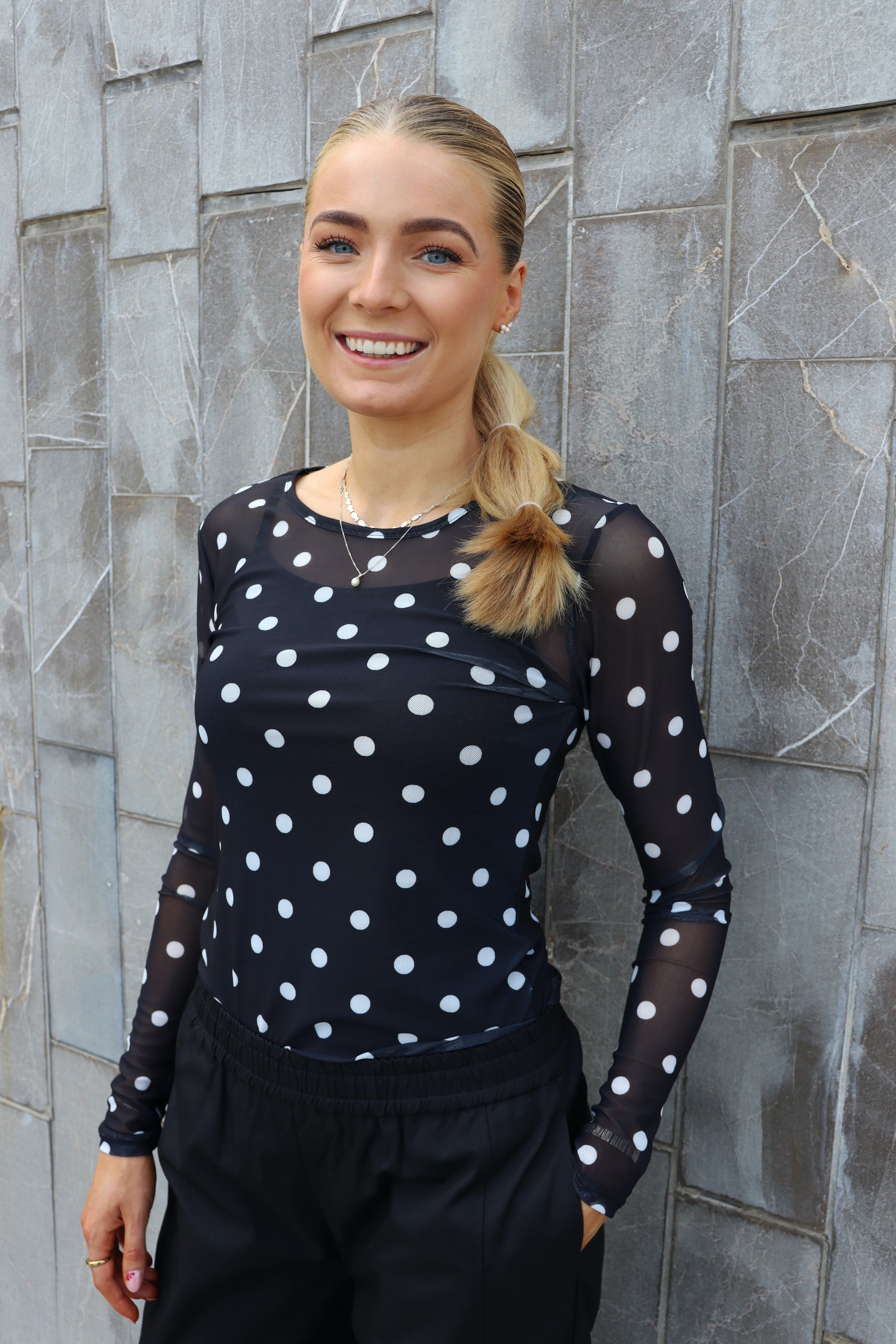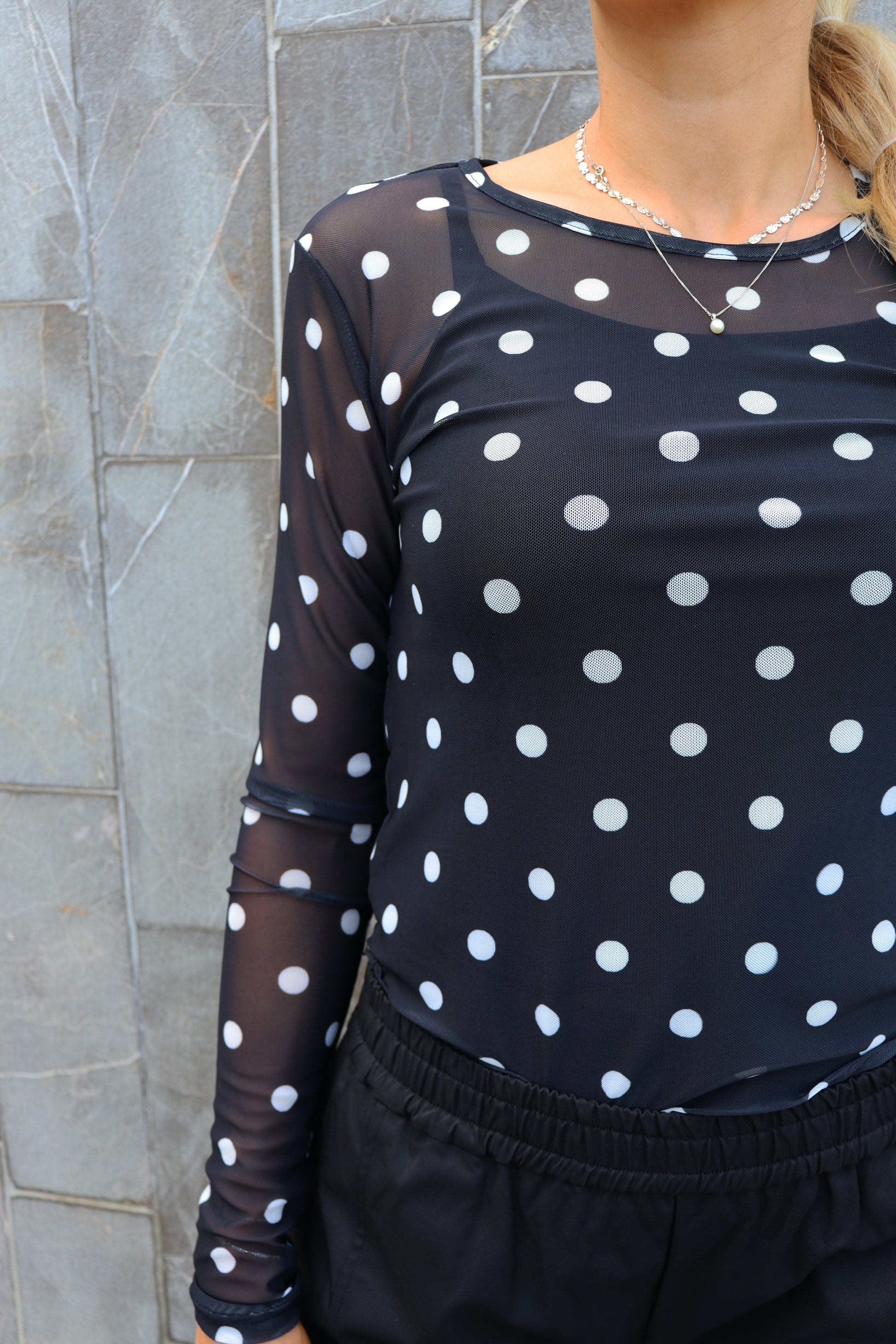 Liberté - Mesh LS T-Shirt, 22065 - Black White Big Dot