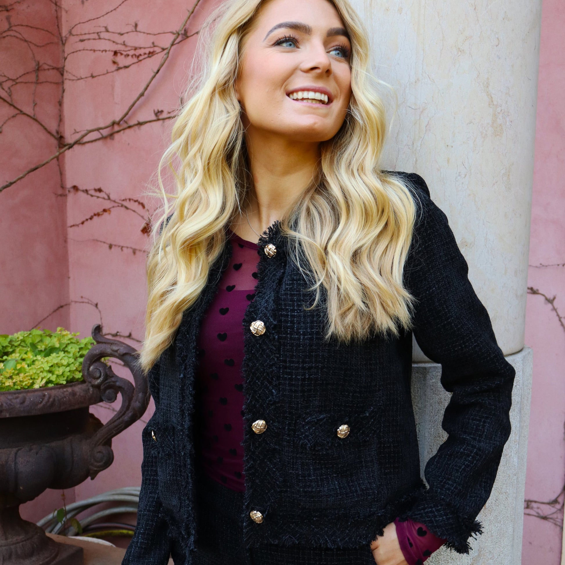 Denne i en flot bordeaux farve med et fint mønster i sort fløjlsblød filt af små hjerter over det hele.