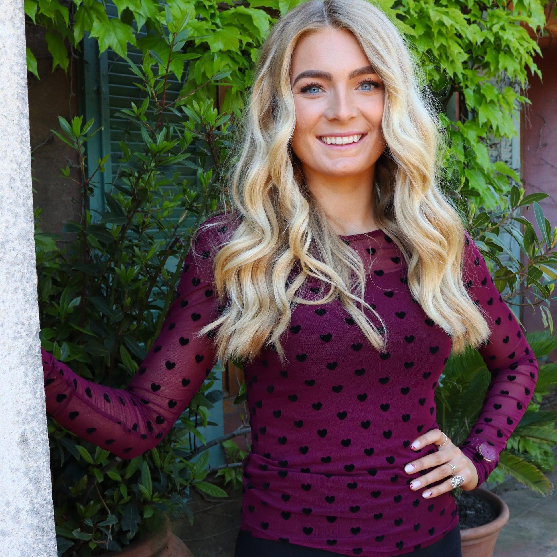 Liberté - Mesh LS T-Shirt, 22065 - Bordeaux Black Flock Heart