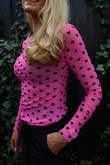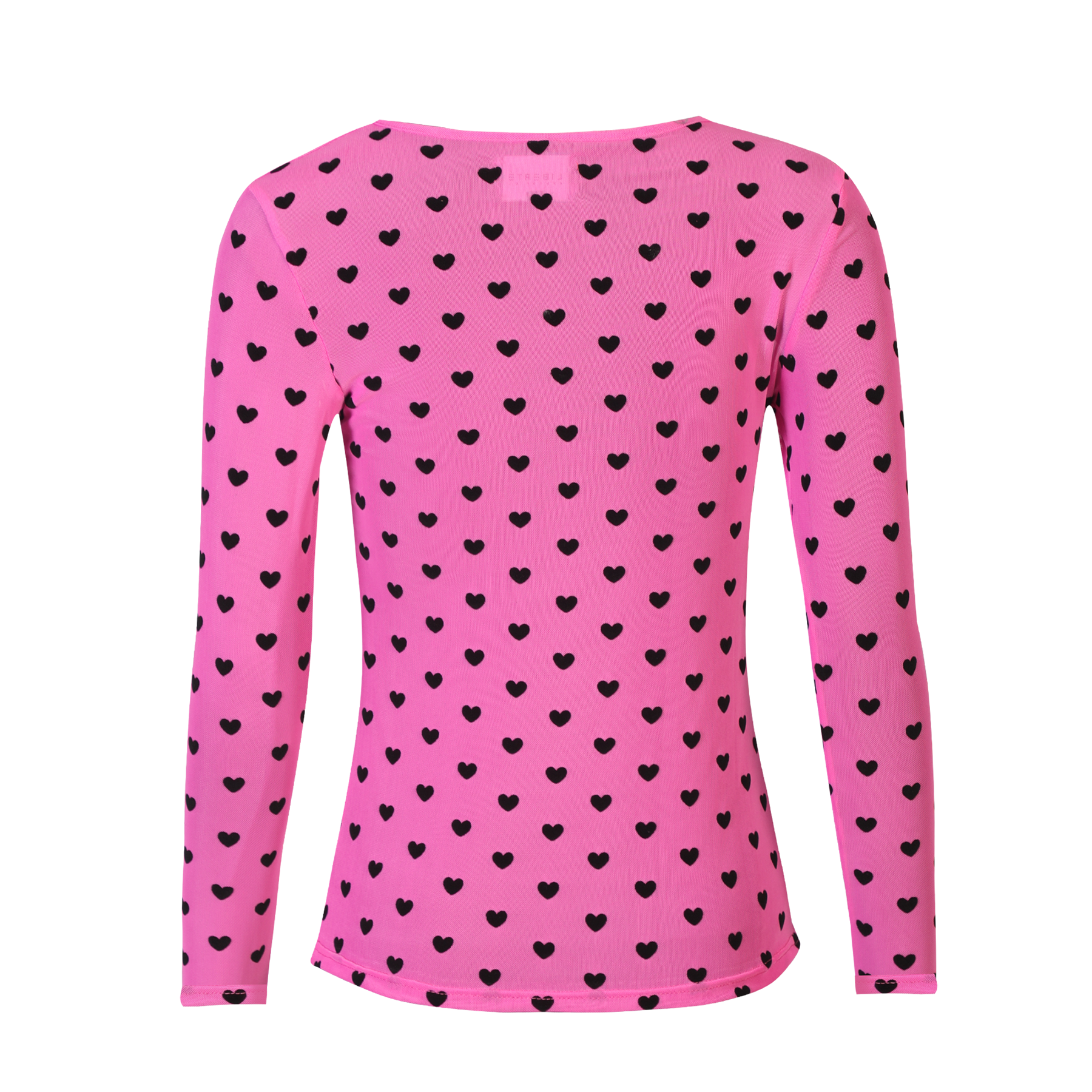 Liberté - Mesh LS T-Shirt, 22065 - Pink Black Flock Heart