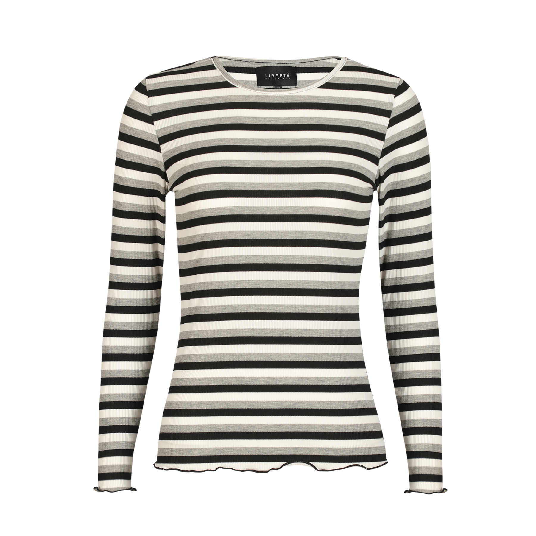 Liberté - Natalia LS Round Neck Blouse, 9914 - Black Creme Black Mel. Stripe