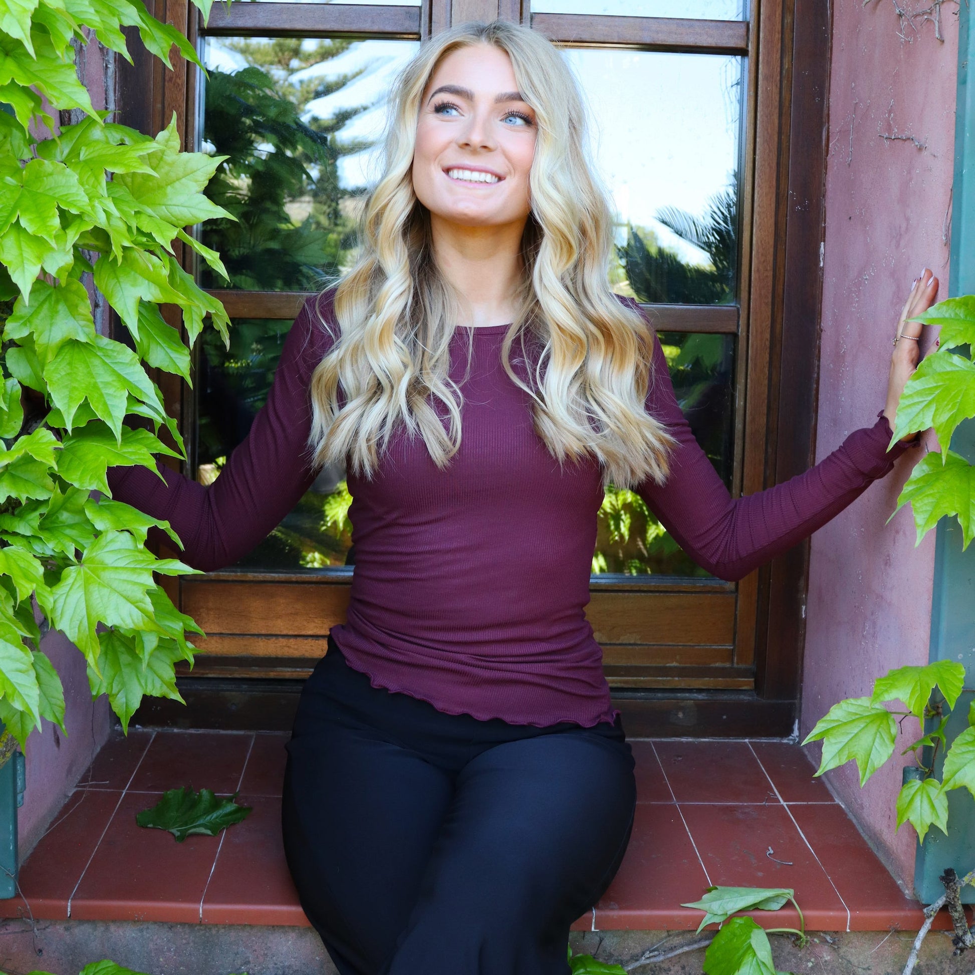 Liberté - Natalia LS Round Neck Blouse, 9914 - Bordeaux