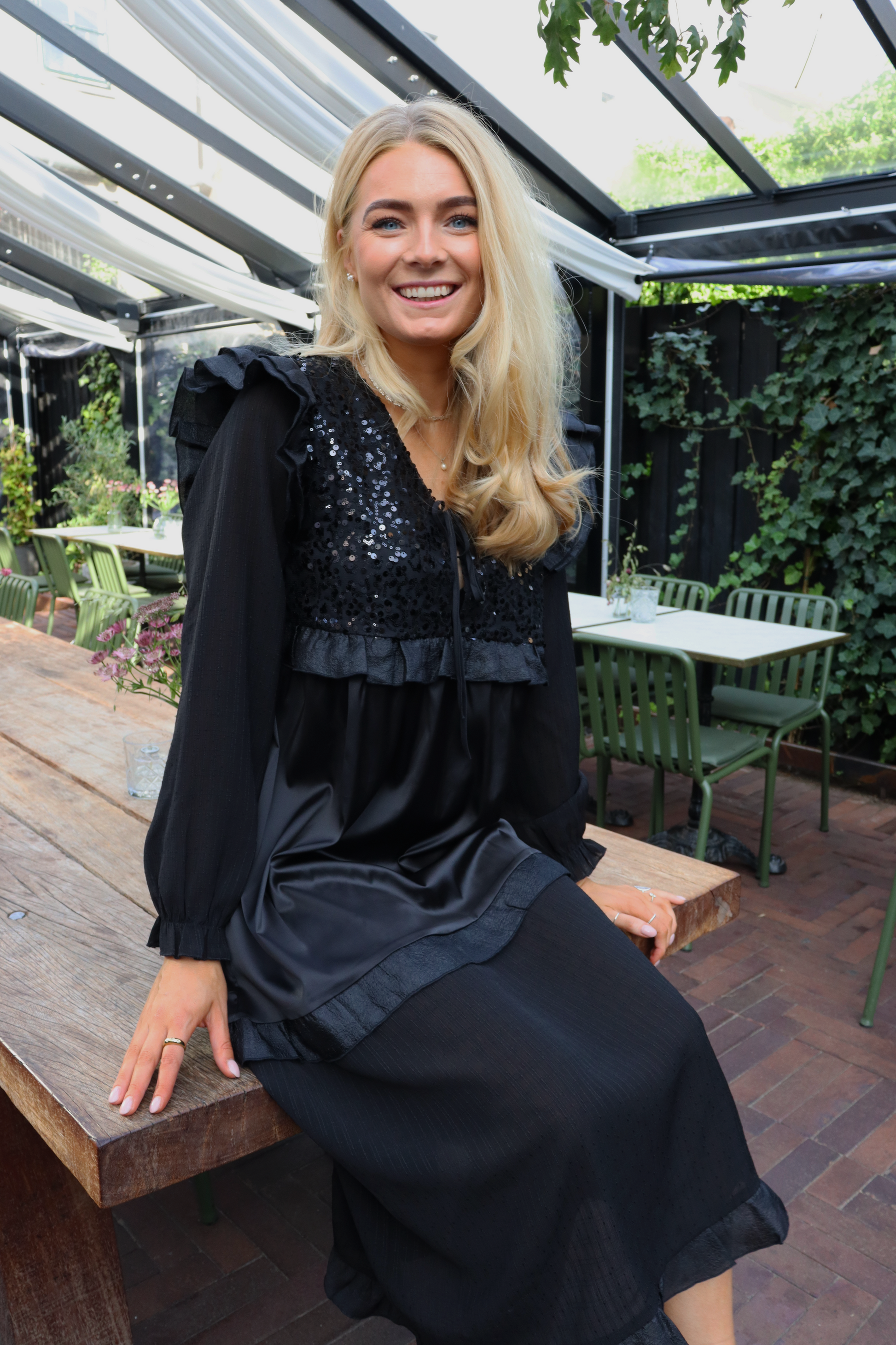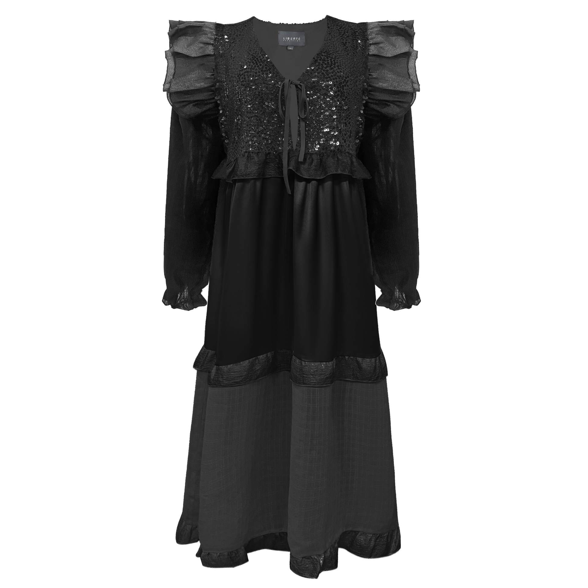 Liberté - Nor LS Frill Dress, 22266 - Black Sequins