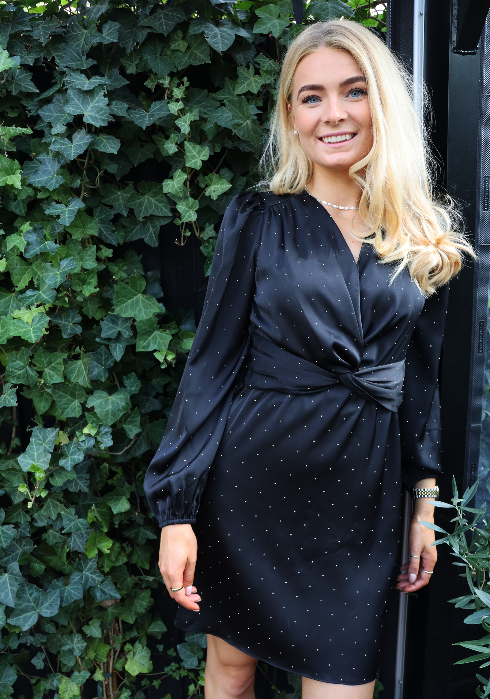 Smuk kjole i satin med lange ærmer til kvinder fra Liberté.