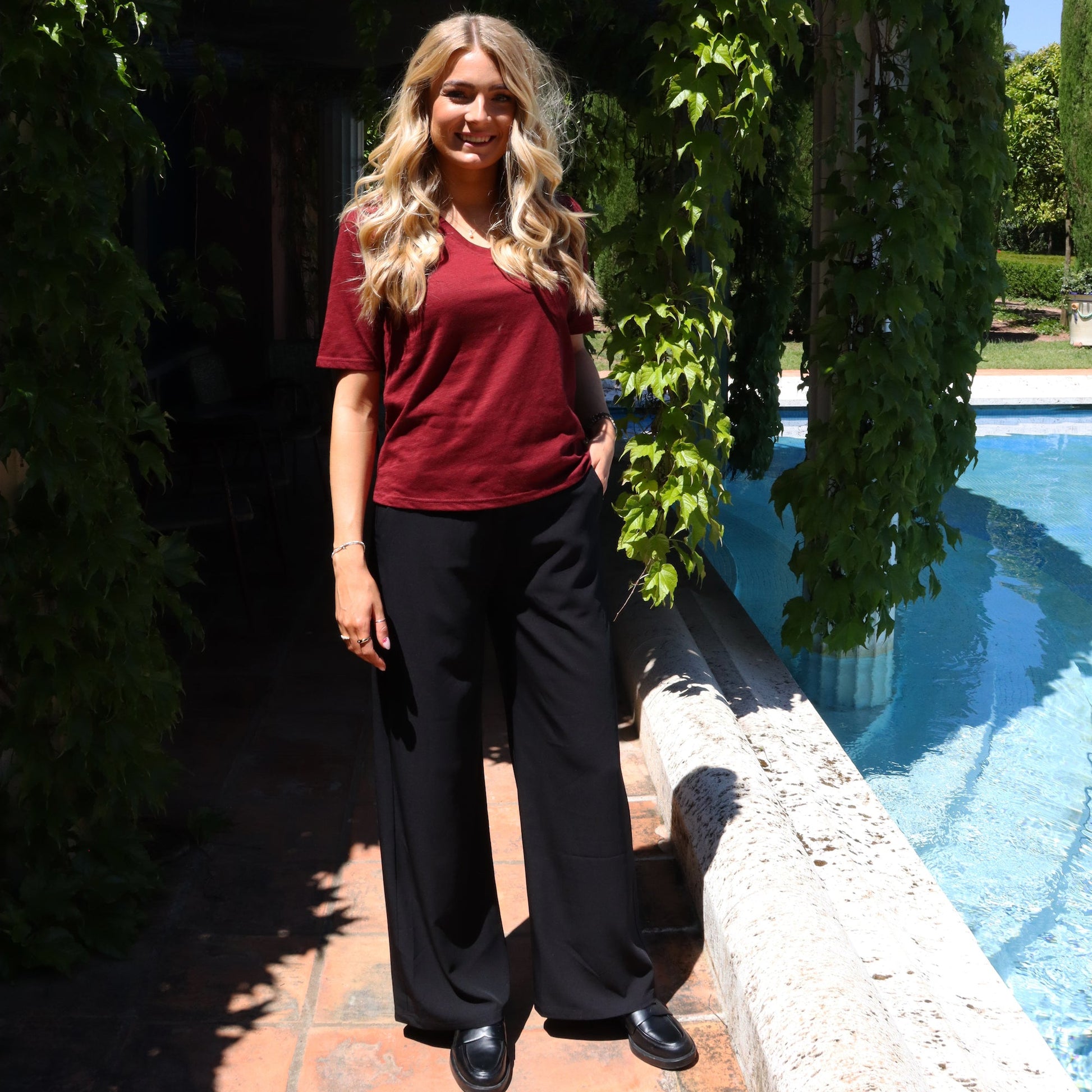 Liberté - Ulla SS V-Neck T-shirt, 21675 - Bordeaux