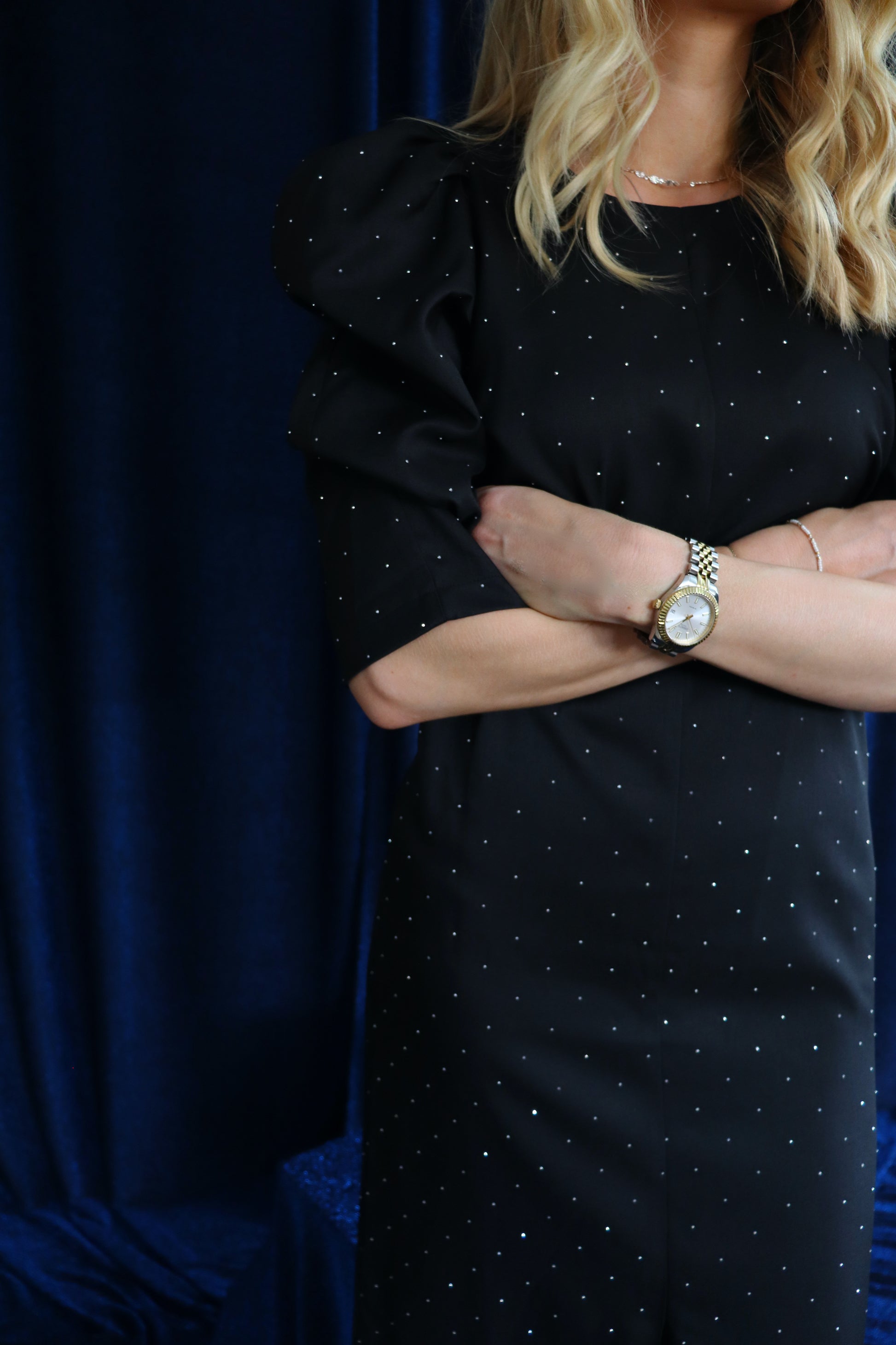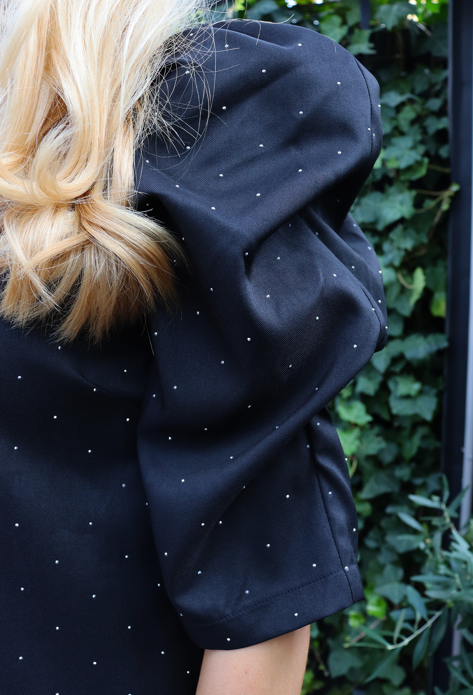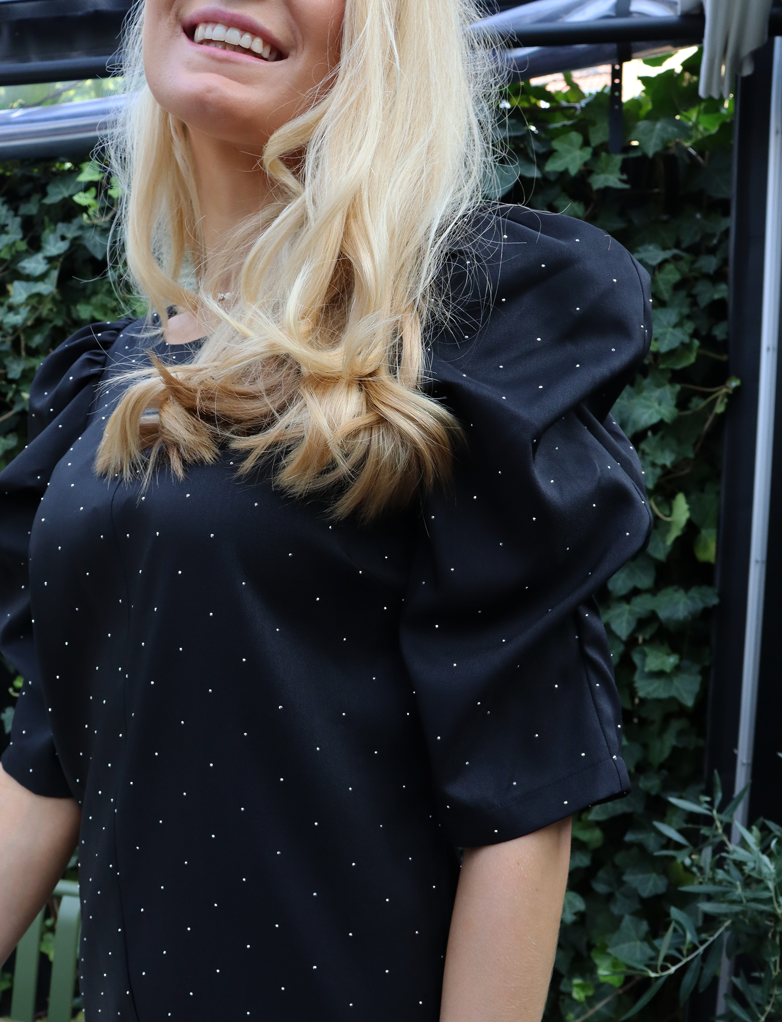 Denne i en klassisk sort farve med fine små similisten over det hele.