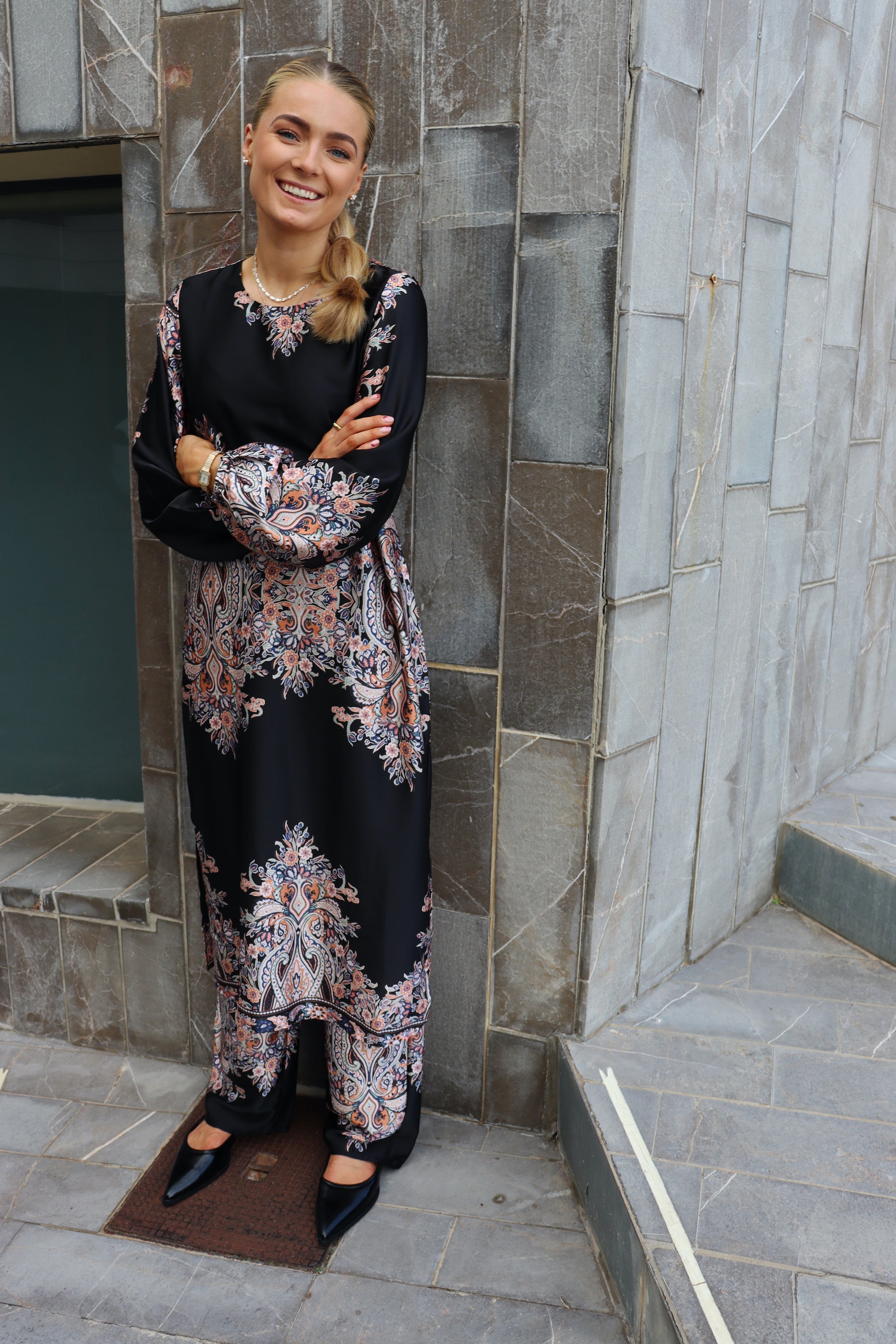 Denne i en klassisk sort farve med et flot paisley mønster.