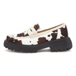 Posey Animal er lavet i certificeret koskind med sæsonens iøjnefaldende ko-print og står stærkt med sin chunky sål.