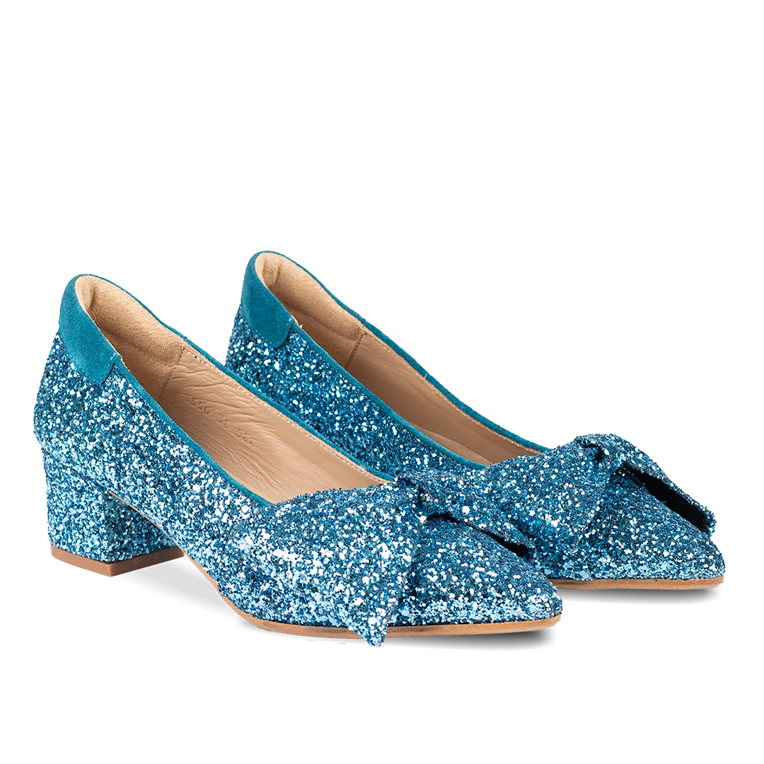 Angulus - Pump Med Sløjfe, 1550 - Aqua Glitter / Aqua