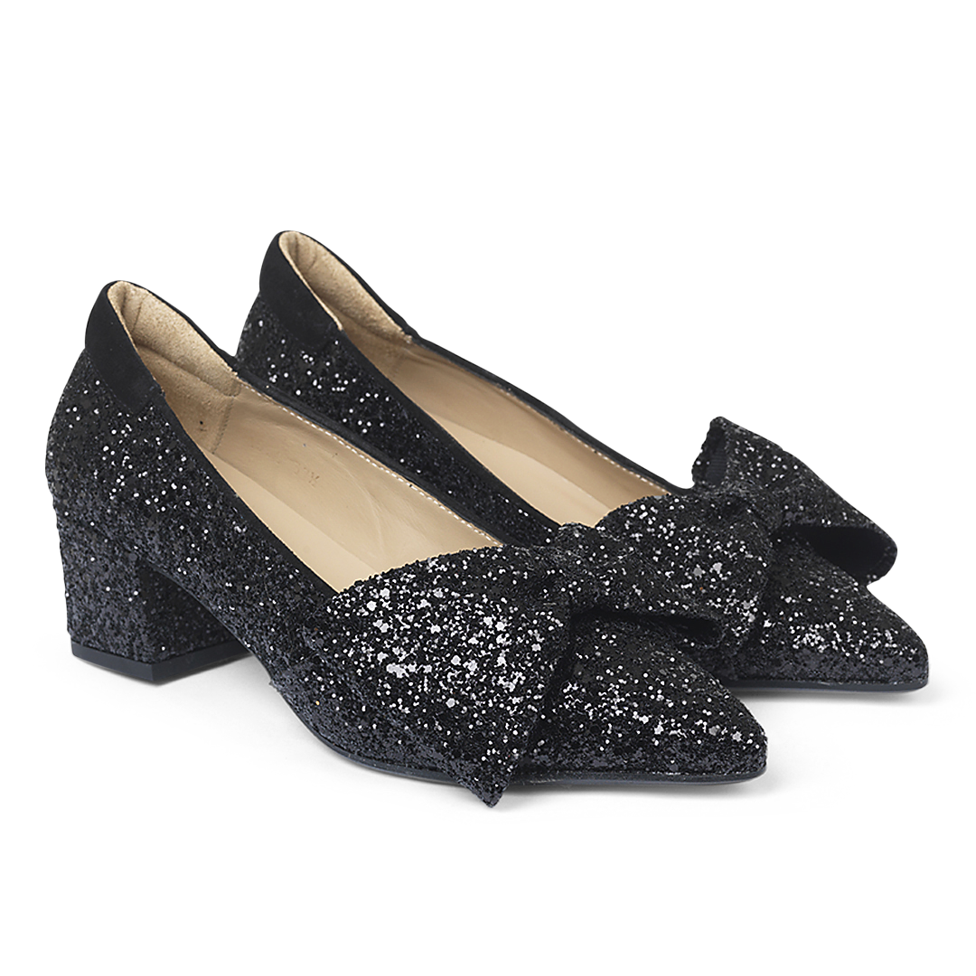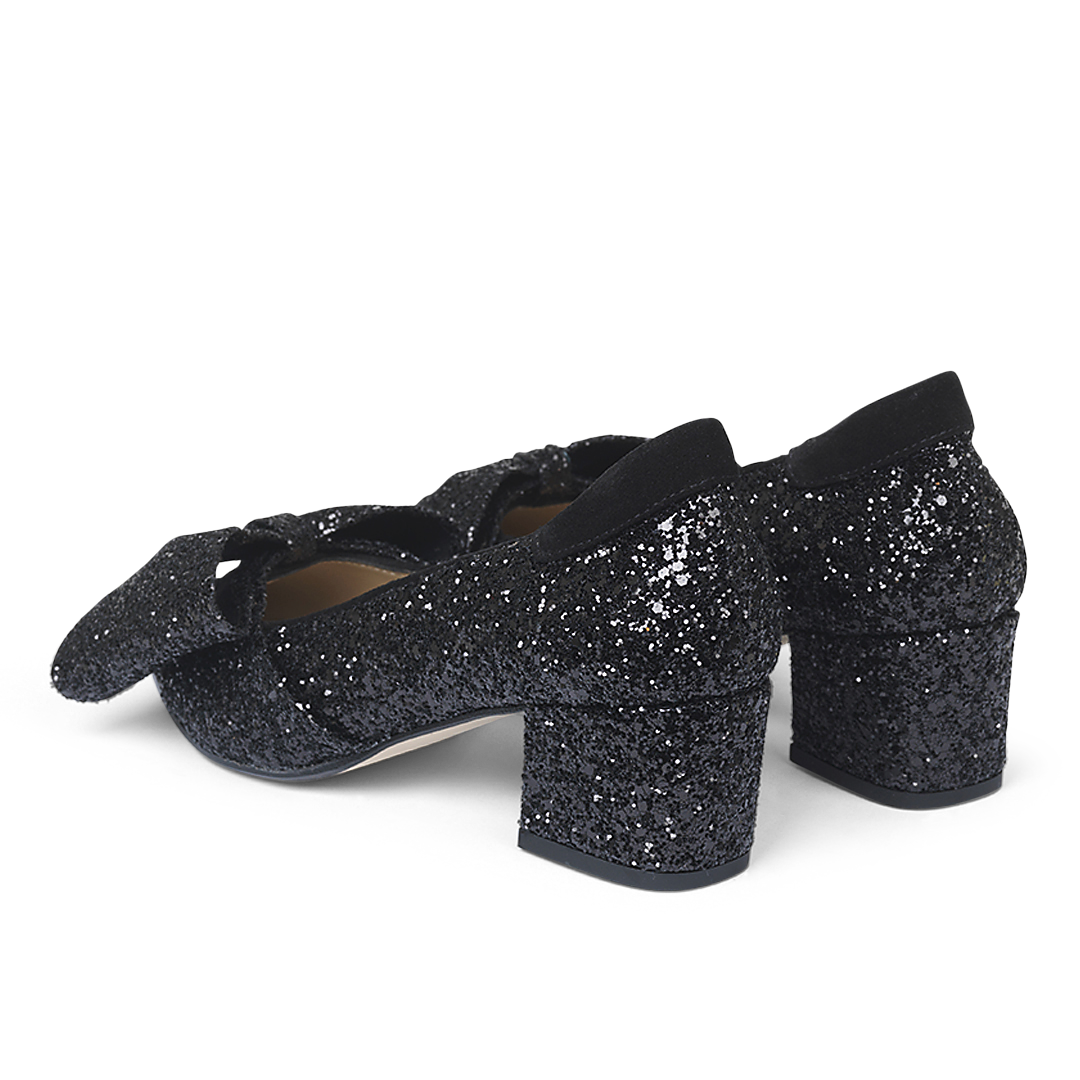 Angulus - Pump Med Sløjfe, 1550 - Black Glitter / Black
