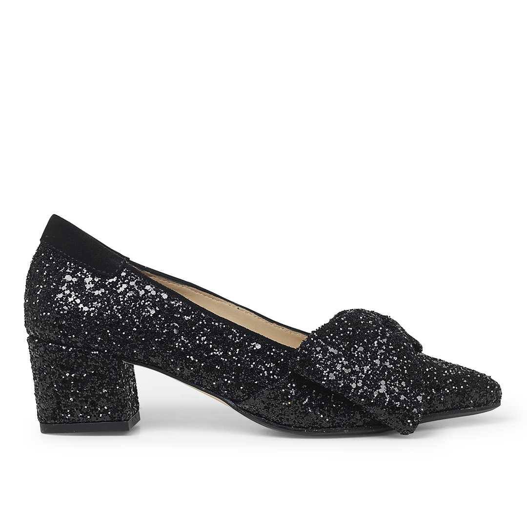 Denne i en klassisk sort ruskind med sort glitter over det hele.