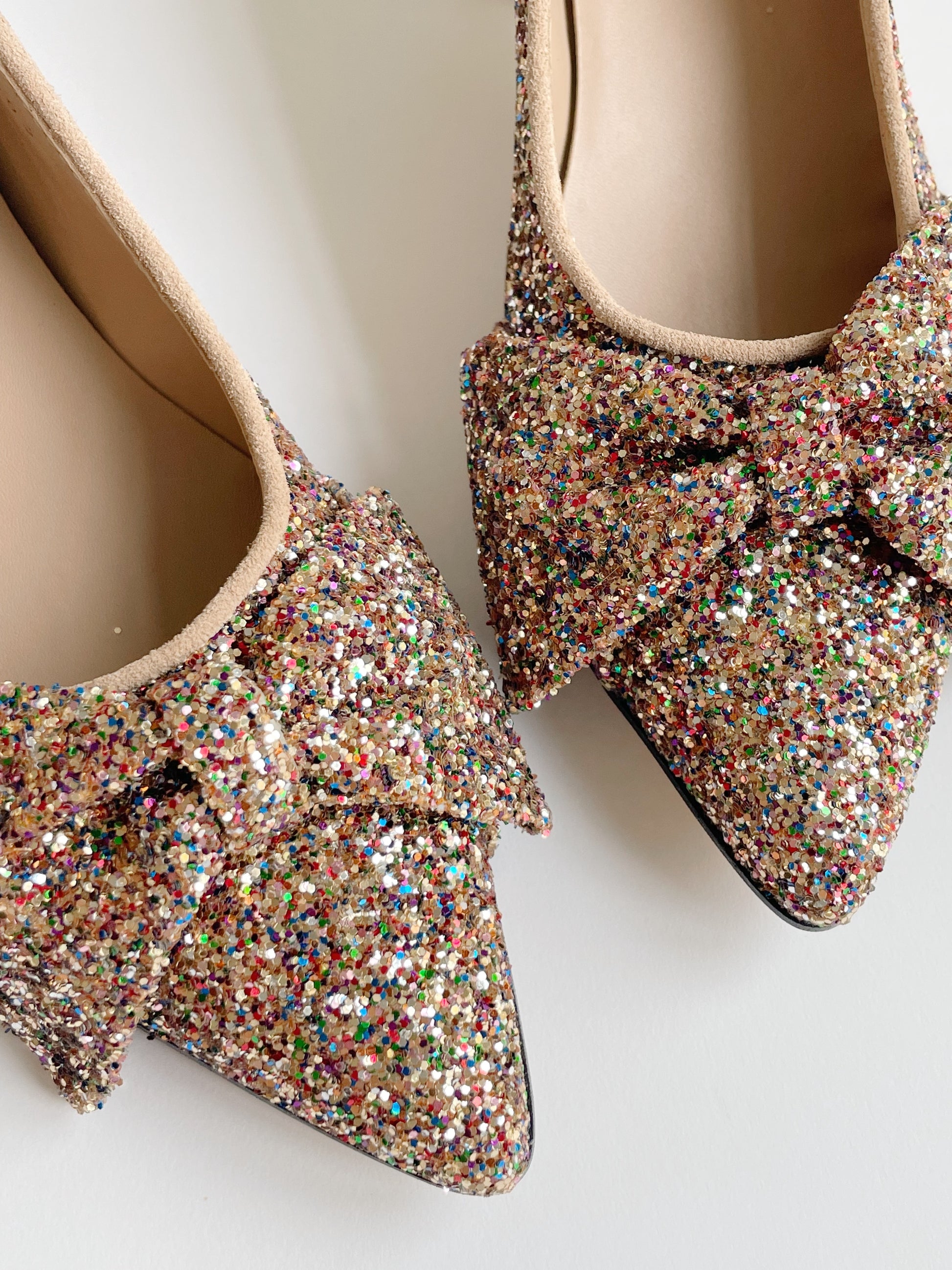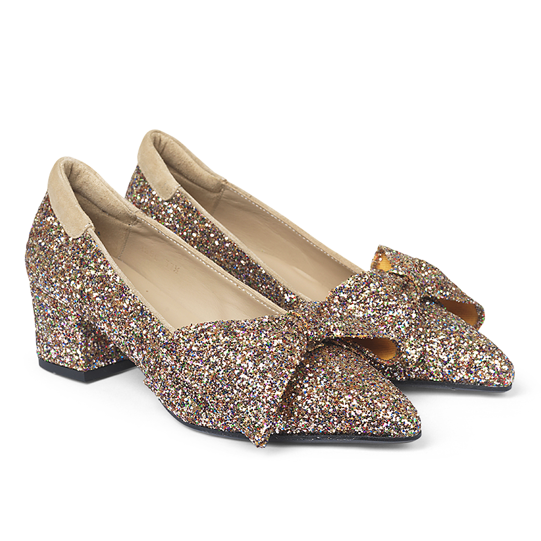 Angulus - Pump Med Sløjfe, 1550 - Multi Glitter / Sand