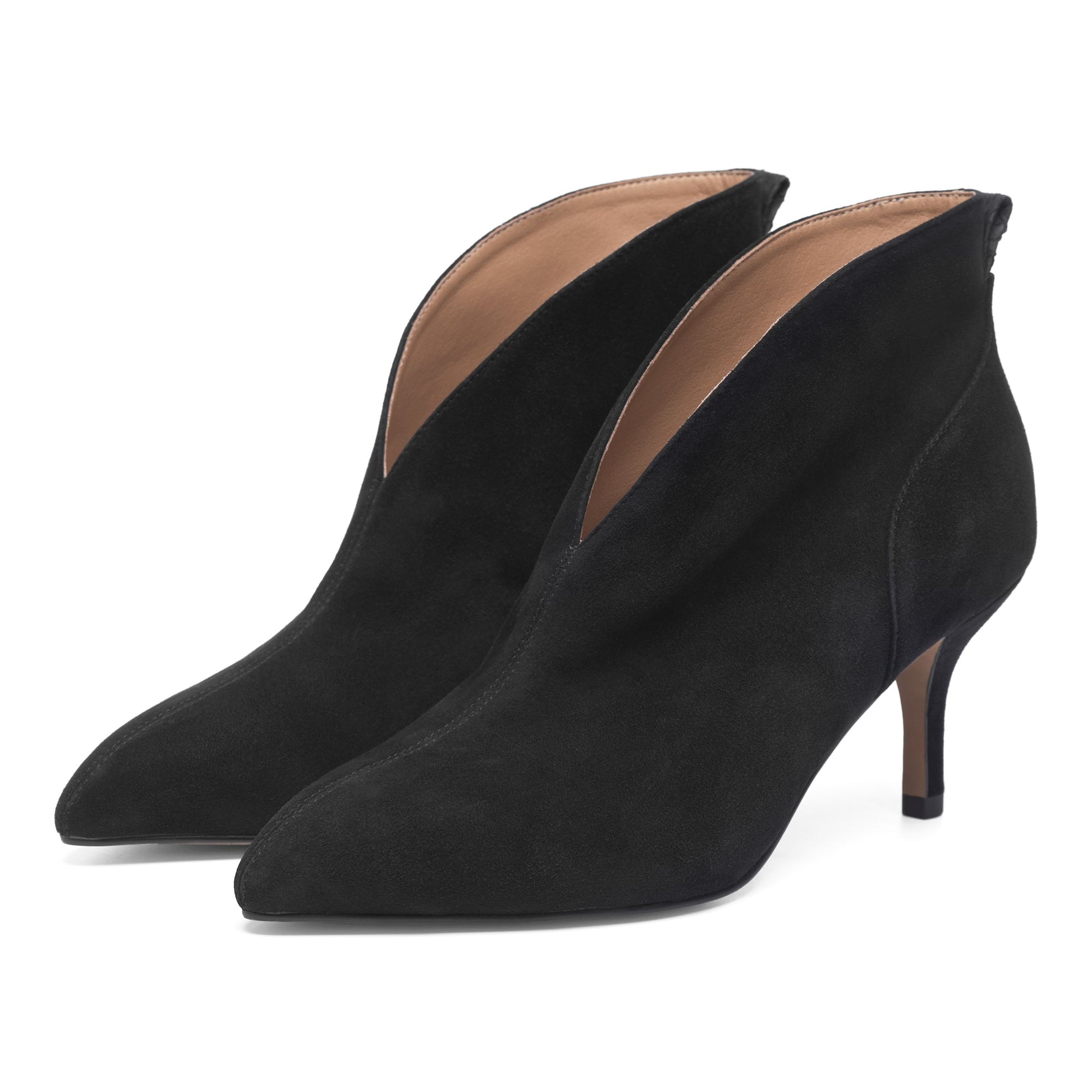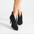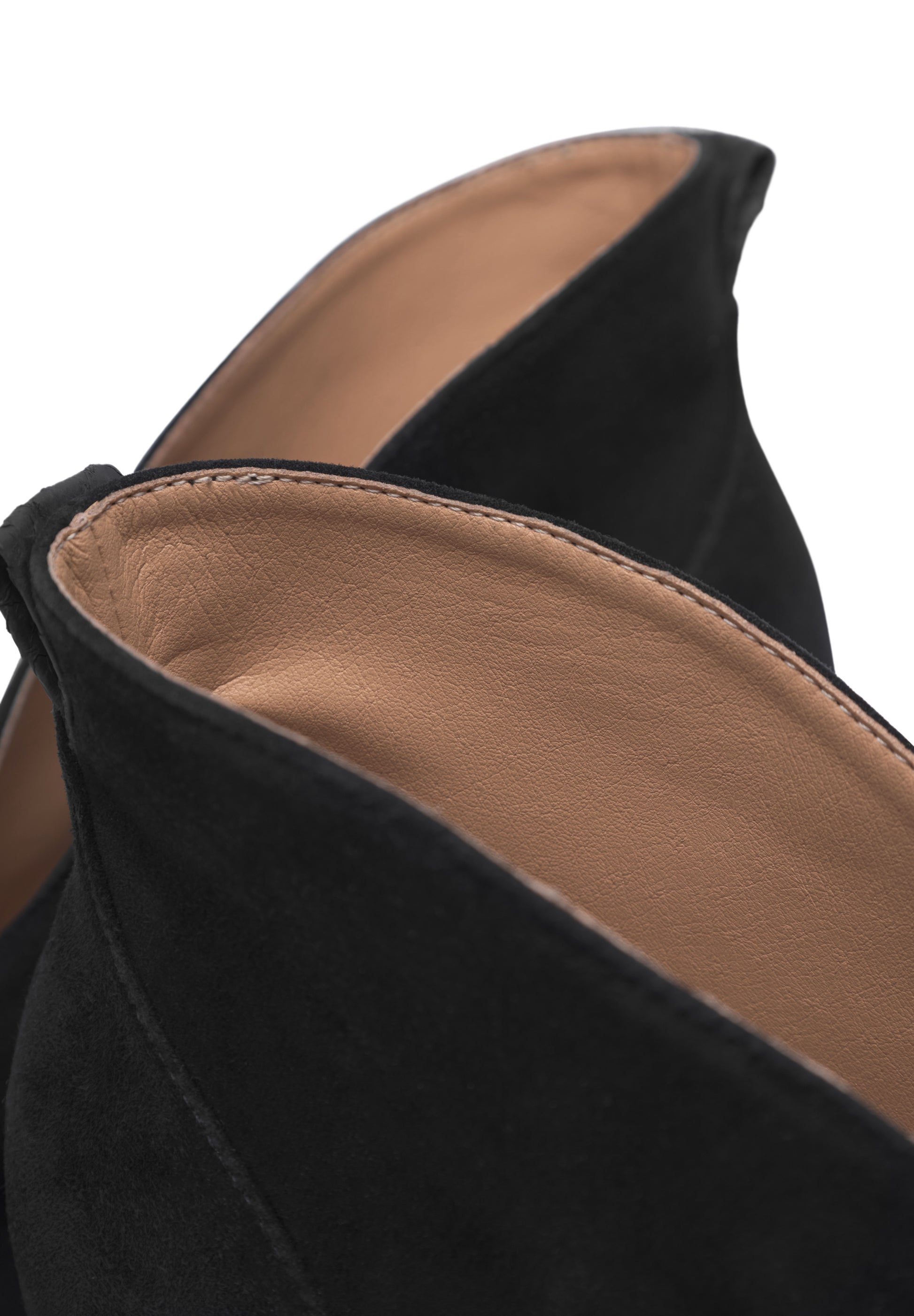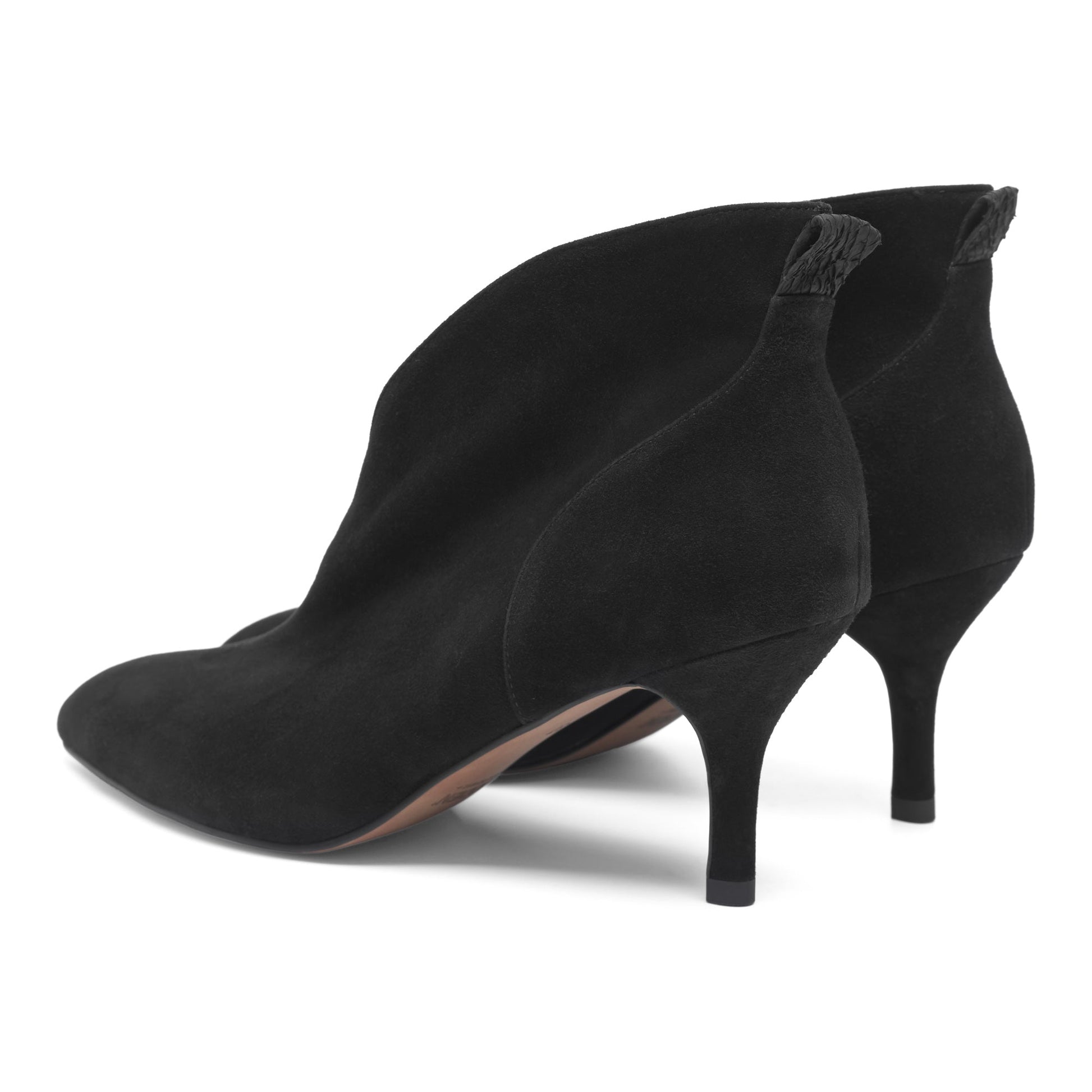 Denne i en klassisk sort farve i ruskind med sort fiskeskind pynte-strop øverst på hælen bagerst.