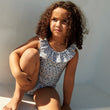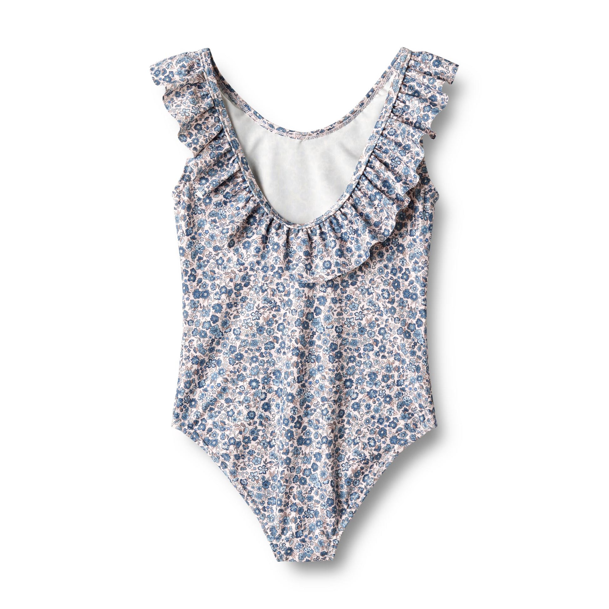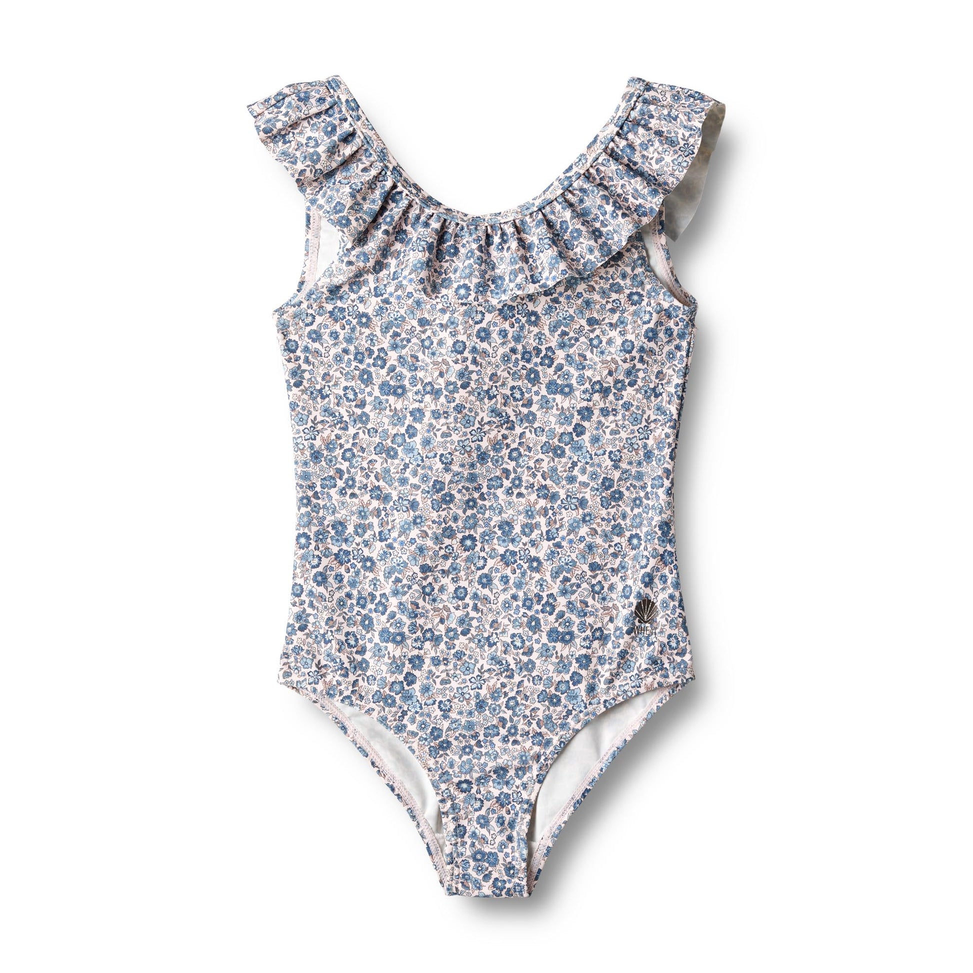 Skøn badedragt med print og flæser til junior fra Wheat.